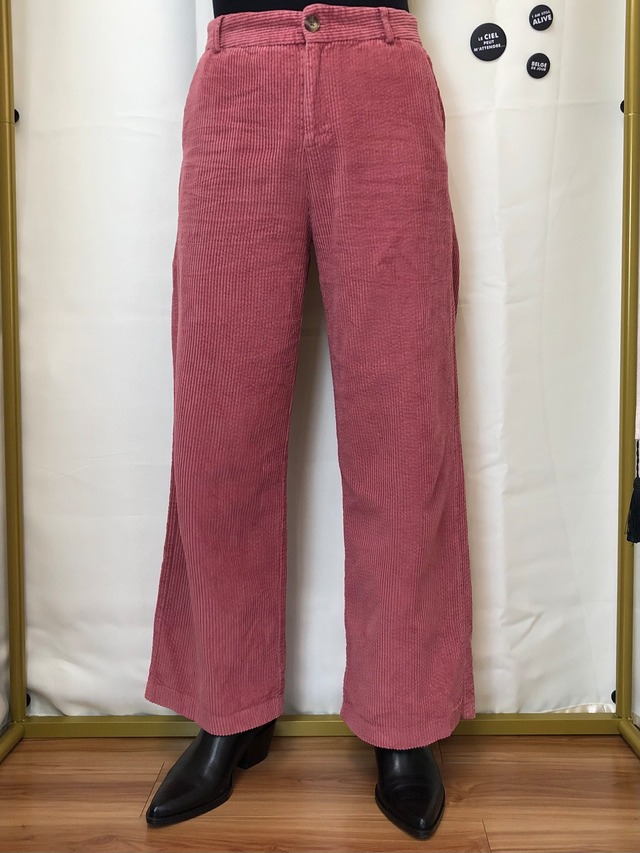 ※ショップ情報又は、About から、 -ご購入前に-の記載を必ずご確認の上ご購入お願い致します。 •ピンクのワイドコーデュロイパンツです◎ (実寸平置き) ウエスト: 38cm 総丈:102cm 股上:31cm 股下:73cm ヒップ:52cm わたり:33cm ベルトループ:あり ポケット:あり 透け感:なし •コンディション:目立ったダメージ汚れはございません。 •カラー:ピンク •素材:コットン100% 着用画像身長169cm ◎Instagram:badu_usedclothing