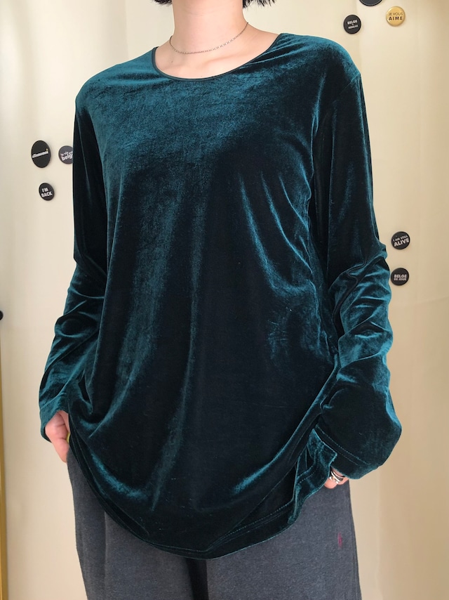 ※ショップ情報又は、About から、 -ご購入前に-の記載を必ずご確認の上ご購入お願い致します。 •グリーンベロアトップス 光の当たり具合で色味が変わり、ロンT感覚で使えるシルエットです◎ (実寸平置き) 着丈:77cm 肩幅:48cm 身幅:56cm 袖丈:64cm アームホール:26cm 袖口:15cm •コンディション:目立ったダメージ汚れはございません。 •カラー:グリーン •素材:ポリエステル90%スパンデックス10% 着用画像身長169cm ◎Instagram:badu_usedclothing