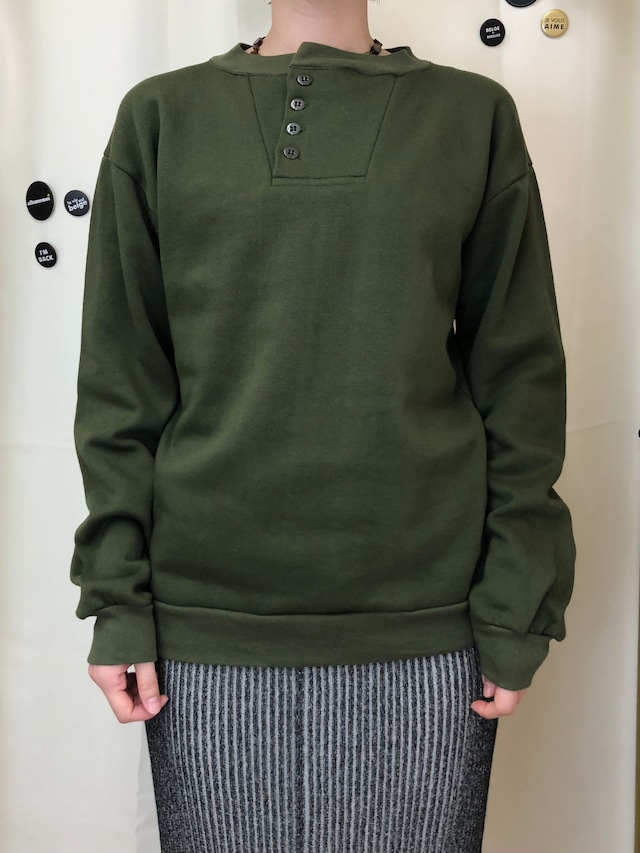 ※ショップ情報又は、About から、 -ご購入前に-の記載を必ずご確認の上ご購入お願い致します。 •ハーフボタンスウェットシャツ (実寸平置き) 着丈:67cm 肩幅:60cm 身幅:55cm 袖丈:63cm アームホール:22cm 袖口:10cm •コンディション:目立ったダメージ汚れはございません。 •カラー:グリーン •素材:表記なし 着用画像身長169cm ◎Instagram:badu_usedclothing
