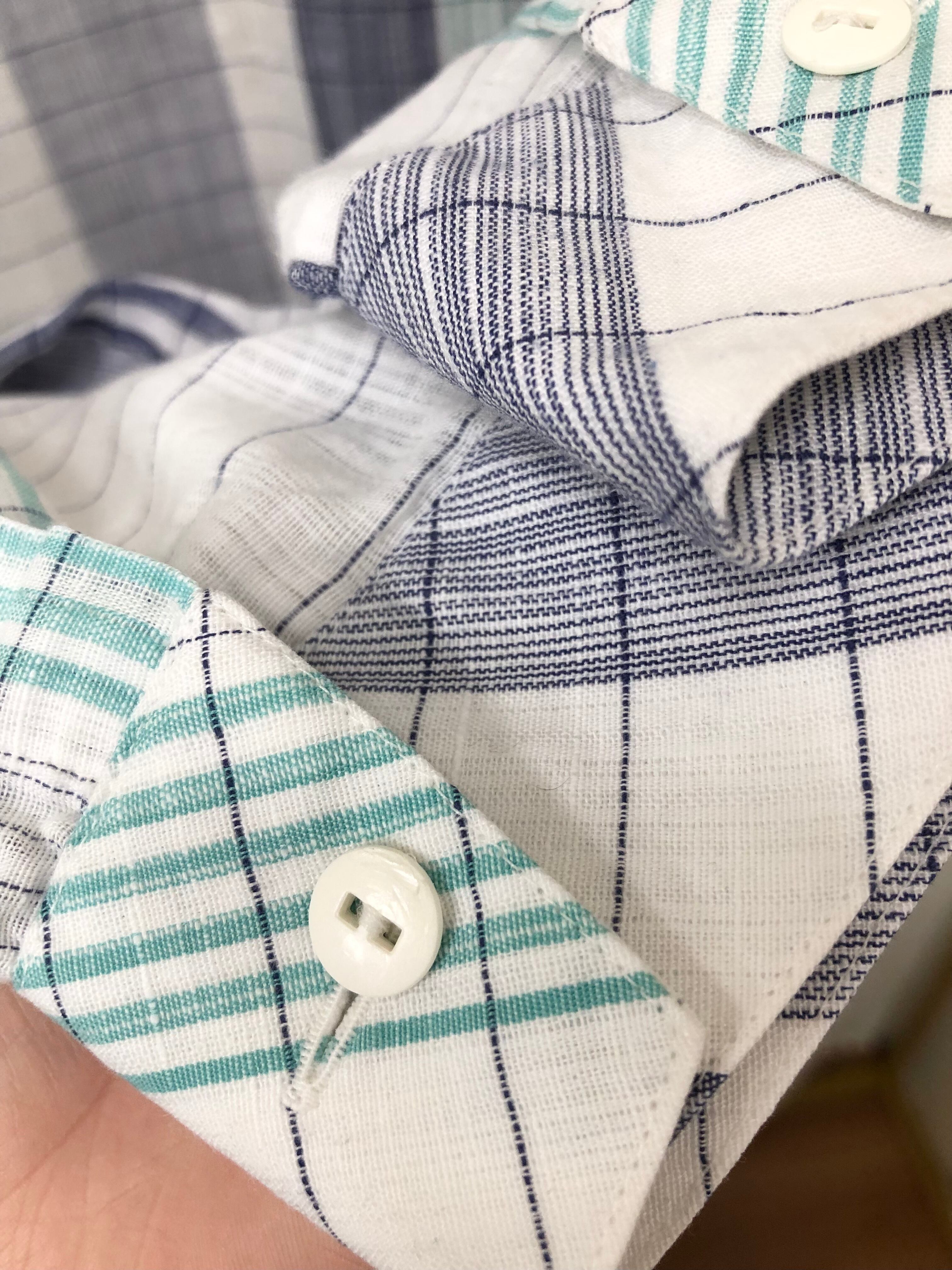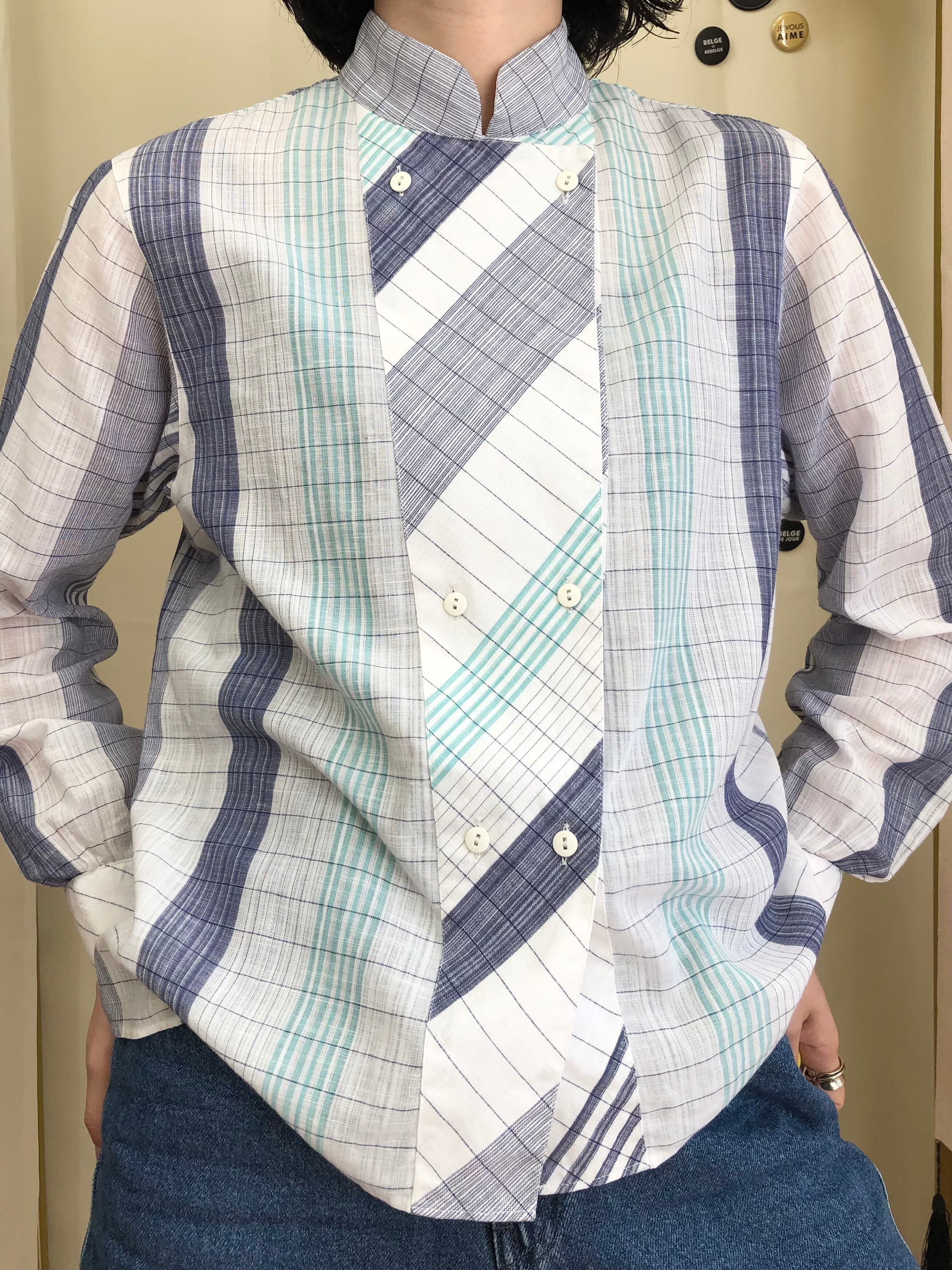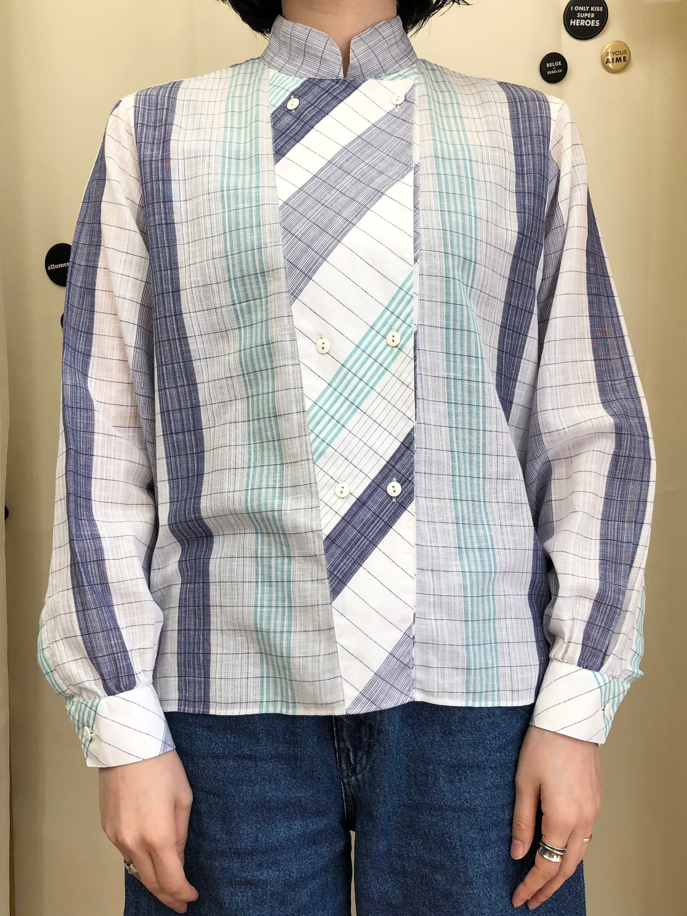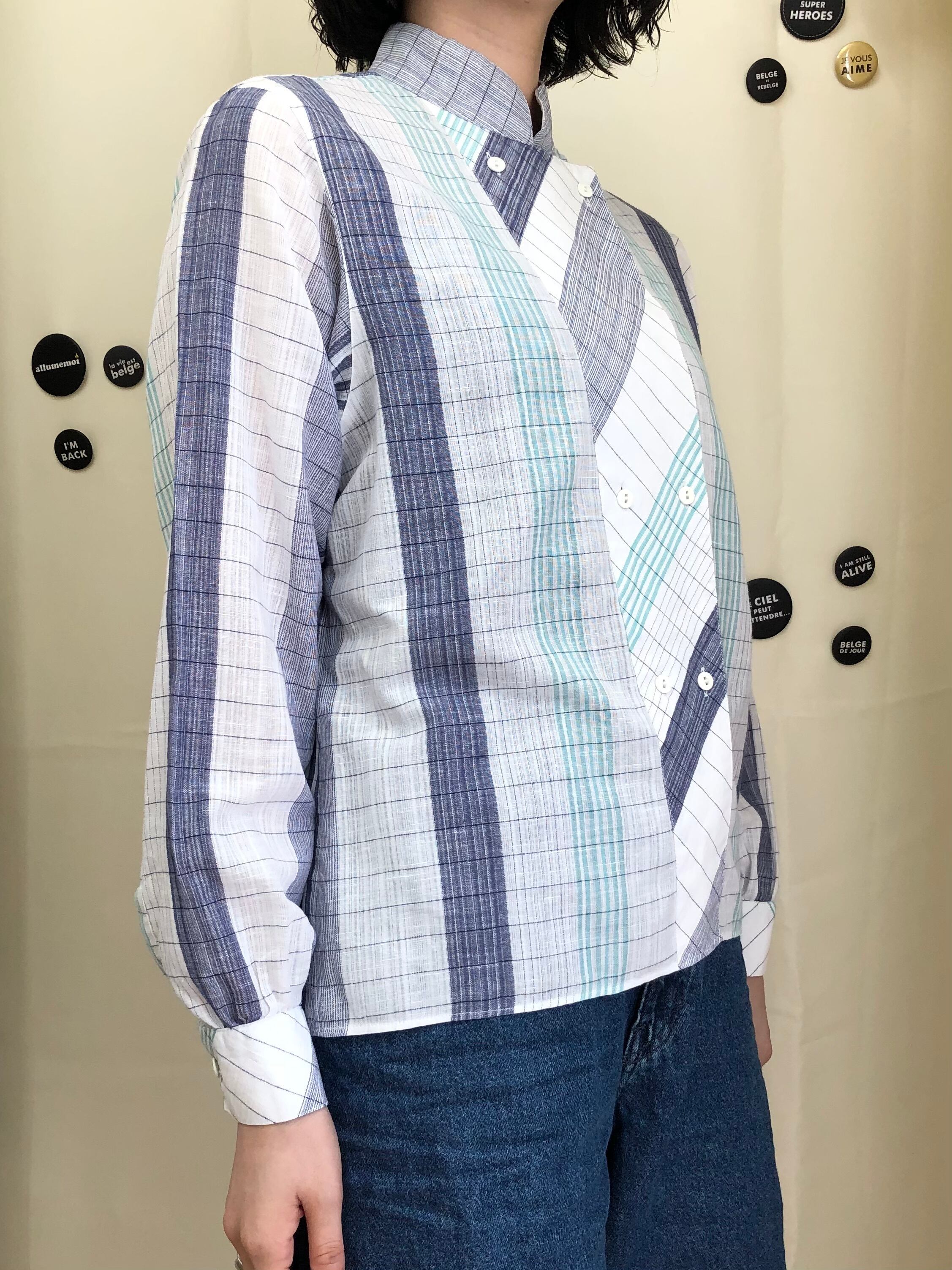コックシャツの様な印象の、透け感のあるダブルブレストシャツです◎