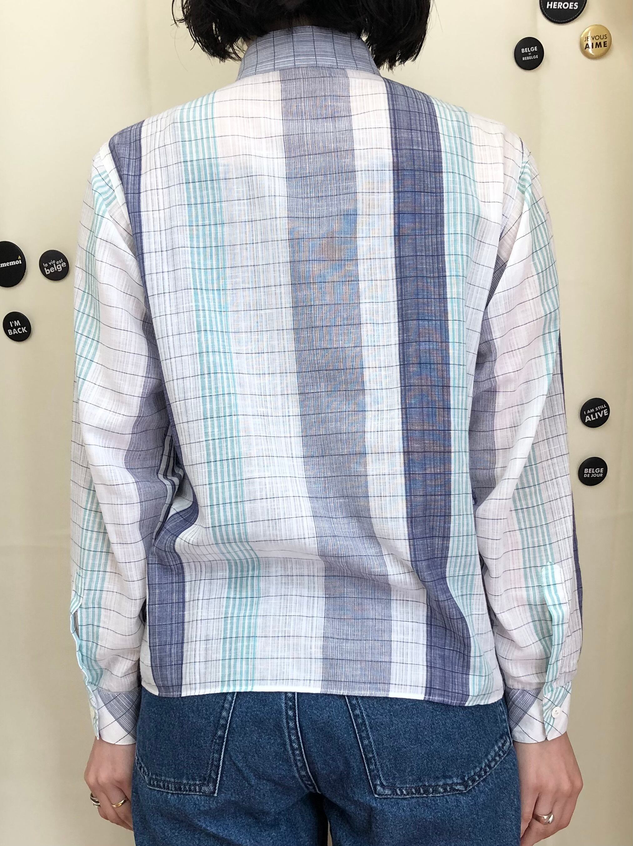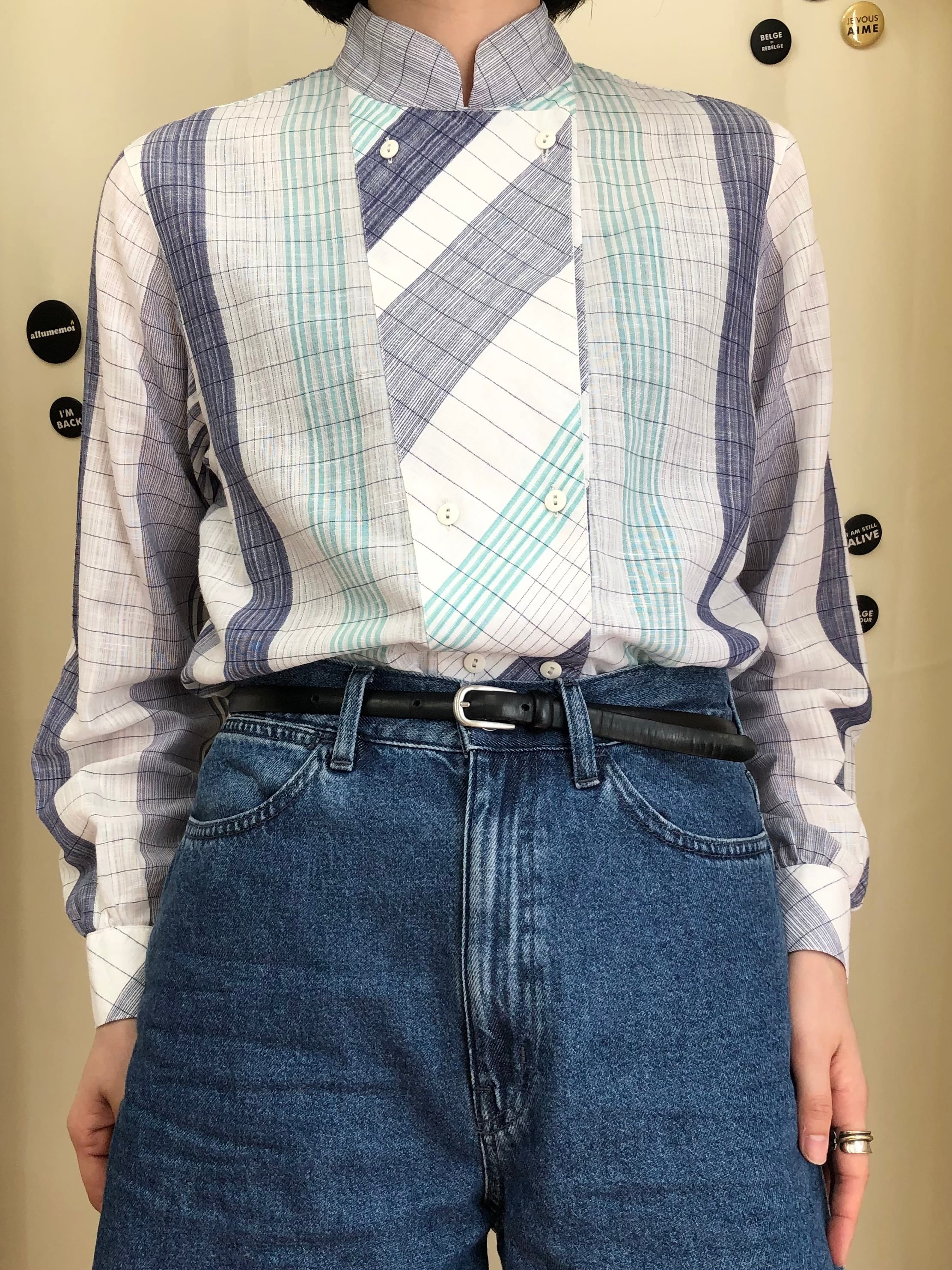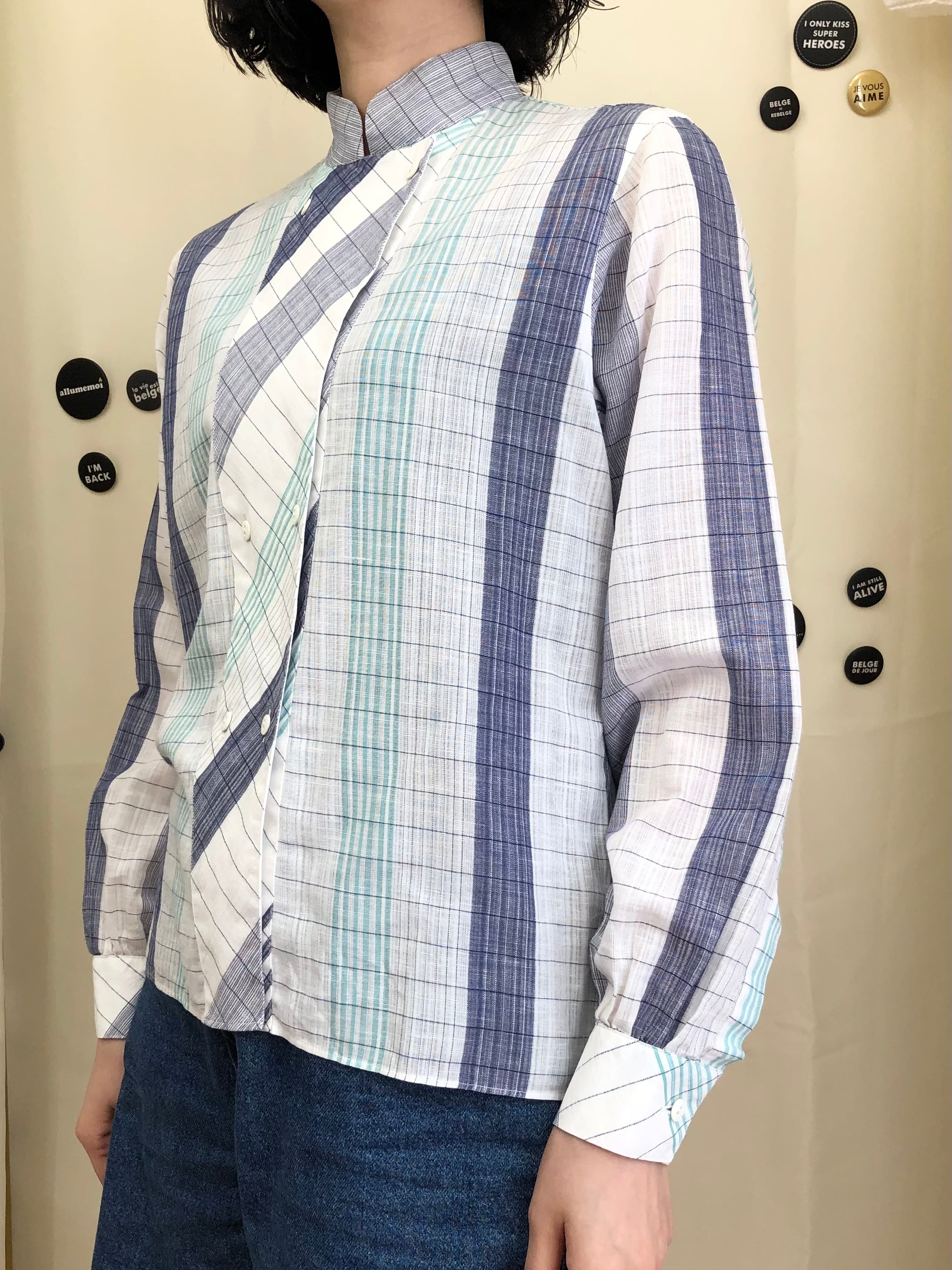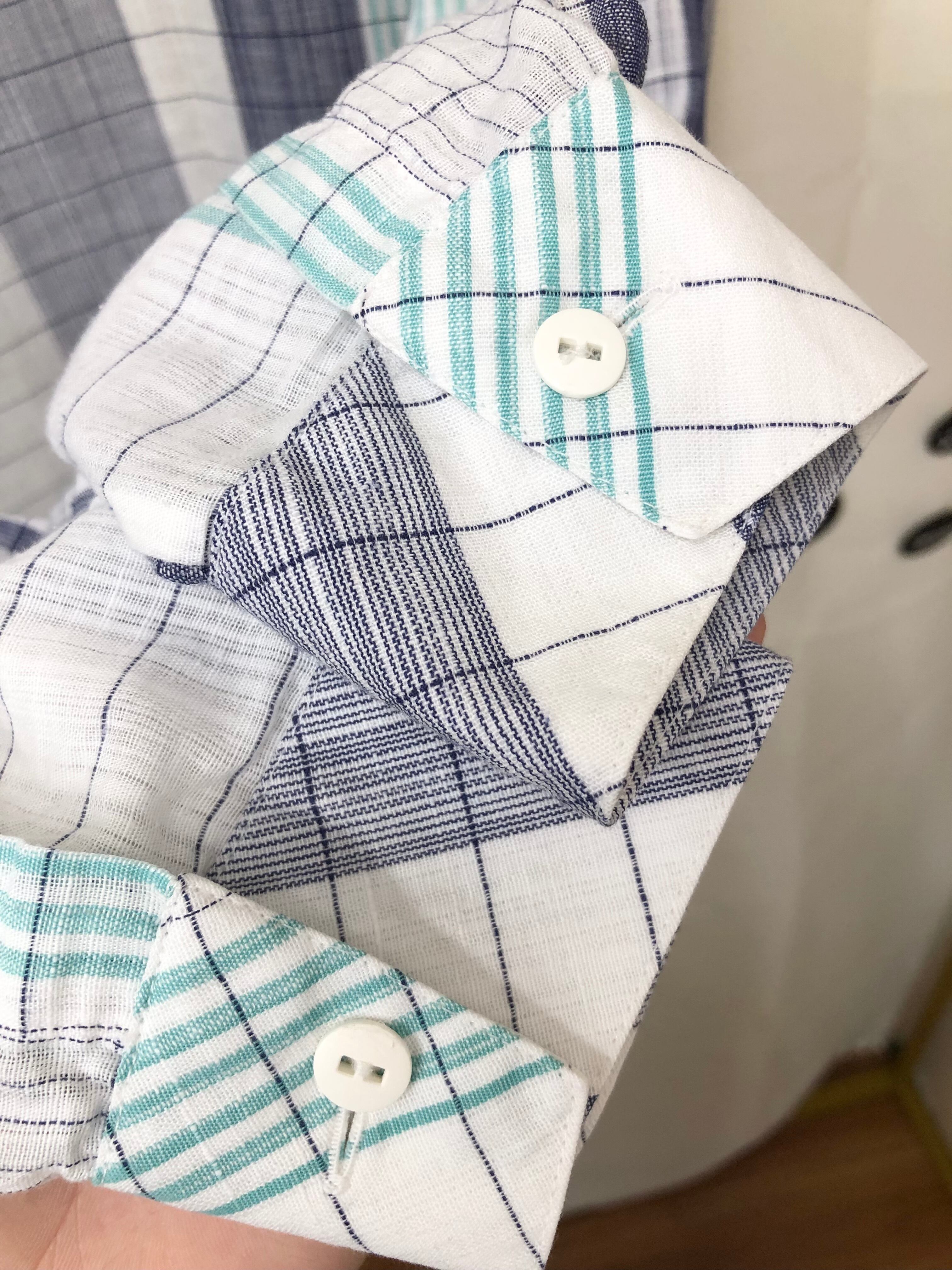 コックシャツの様な印象の、透け感のあるダブルブレストシャツです◎