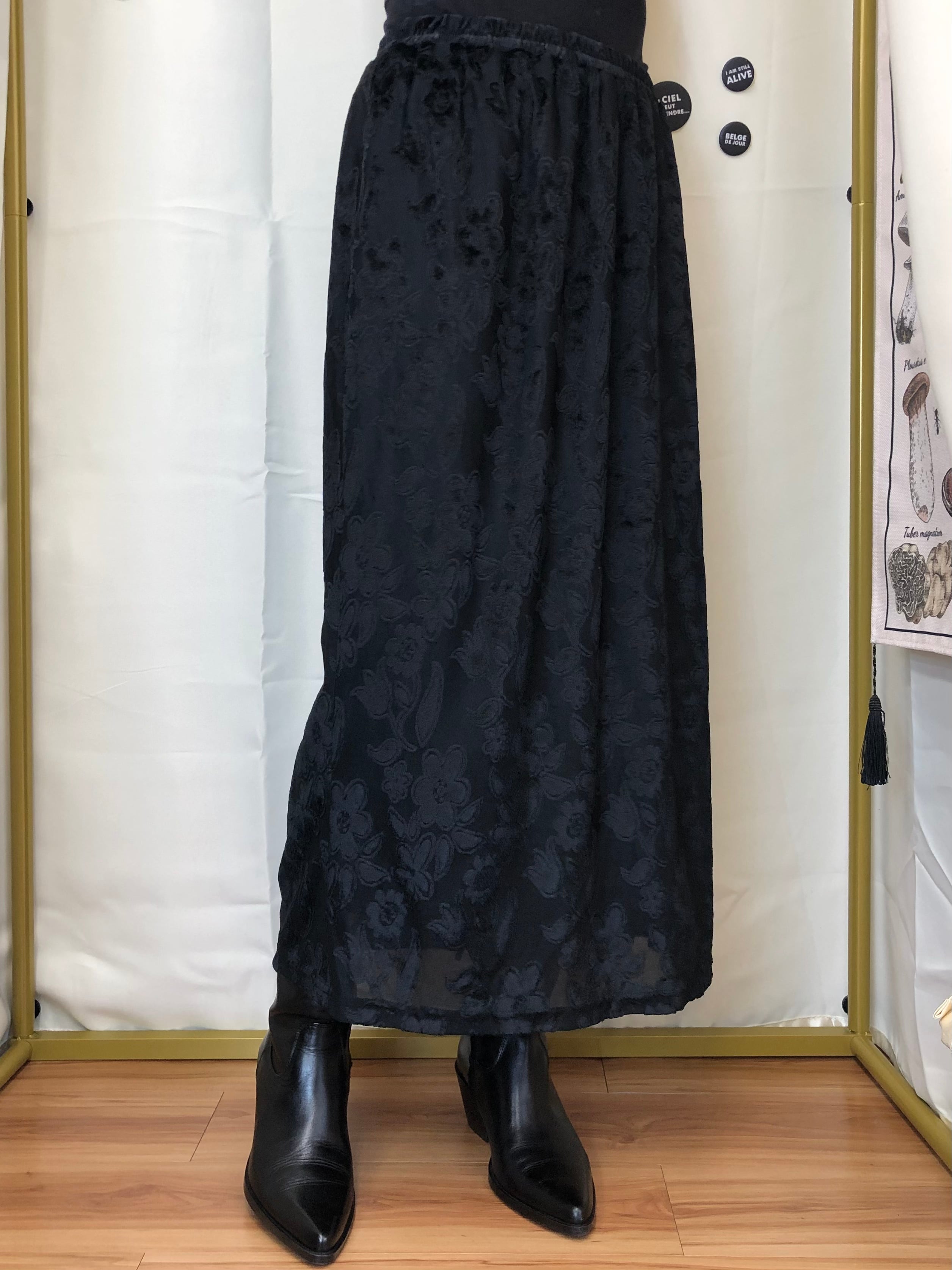 •模様部分がベロア素材になっているフラワー柄スカートです◎
