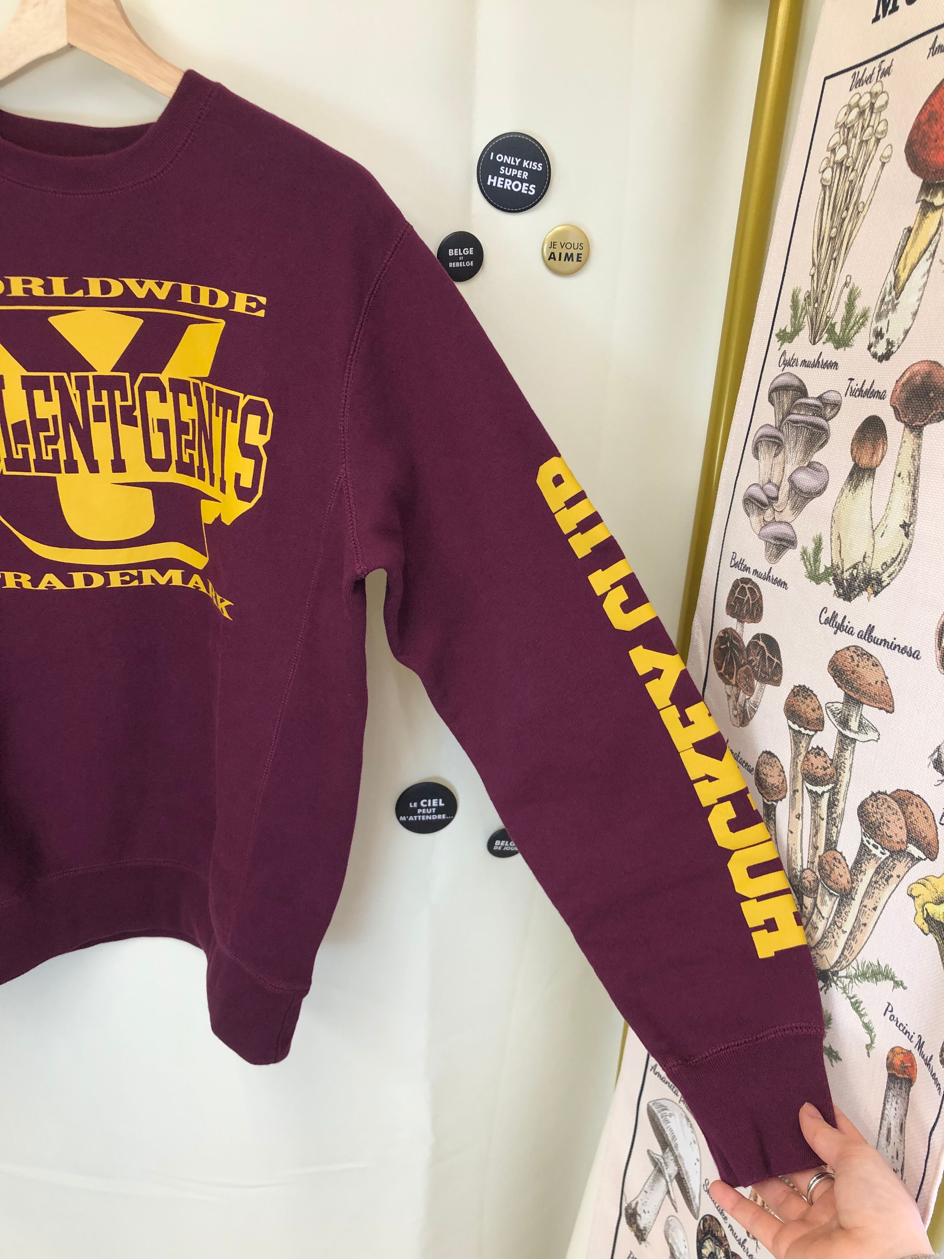 •袖にもプリントが入っているワインレッドのスウェットシャツです◎