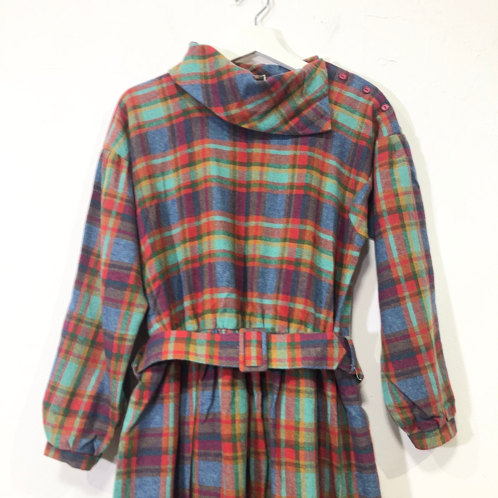•イギリス製カラーチェックワンピース。