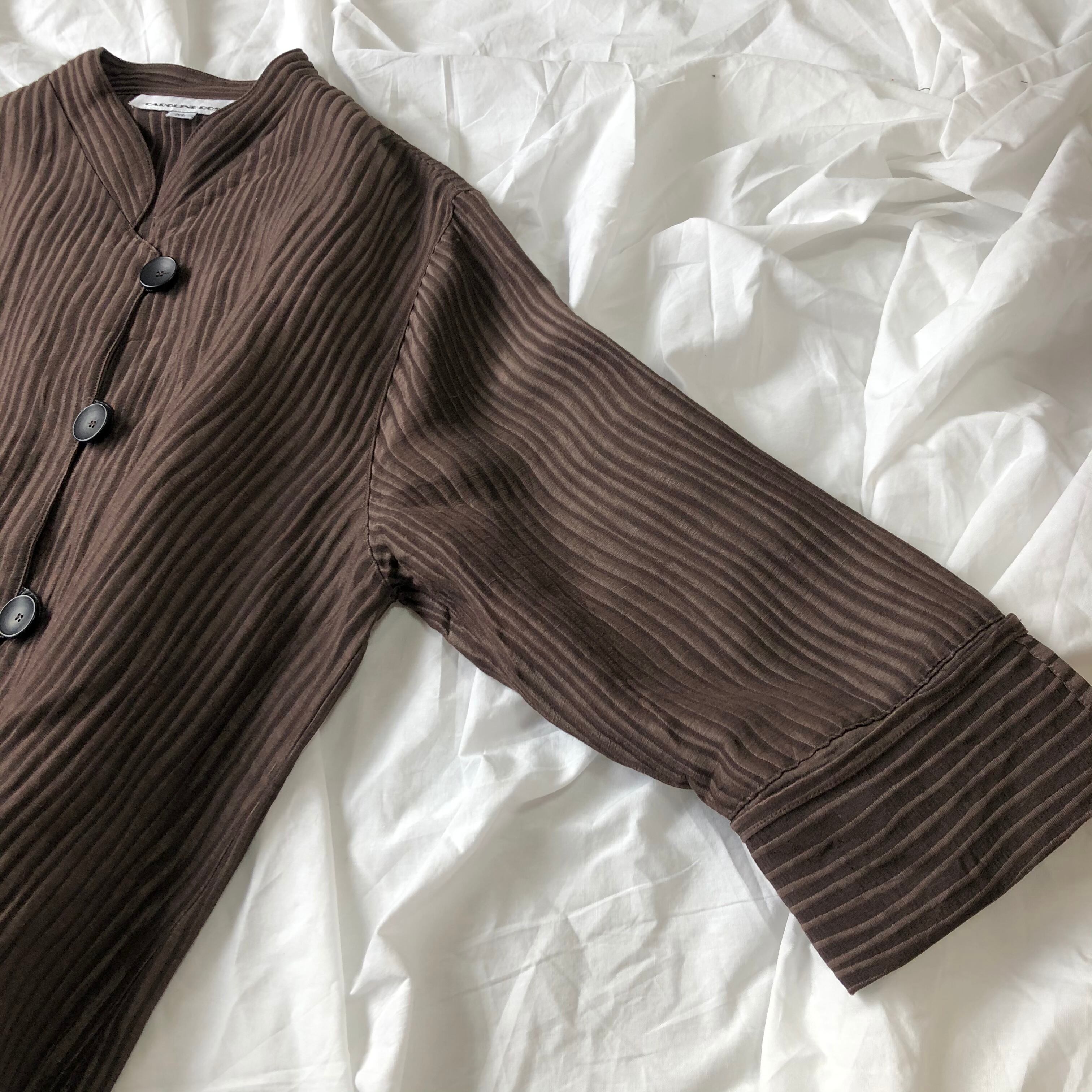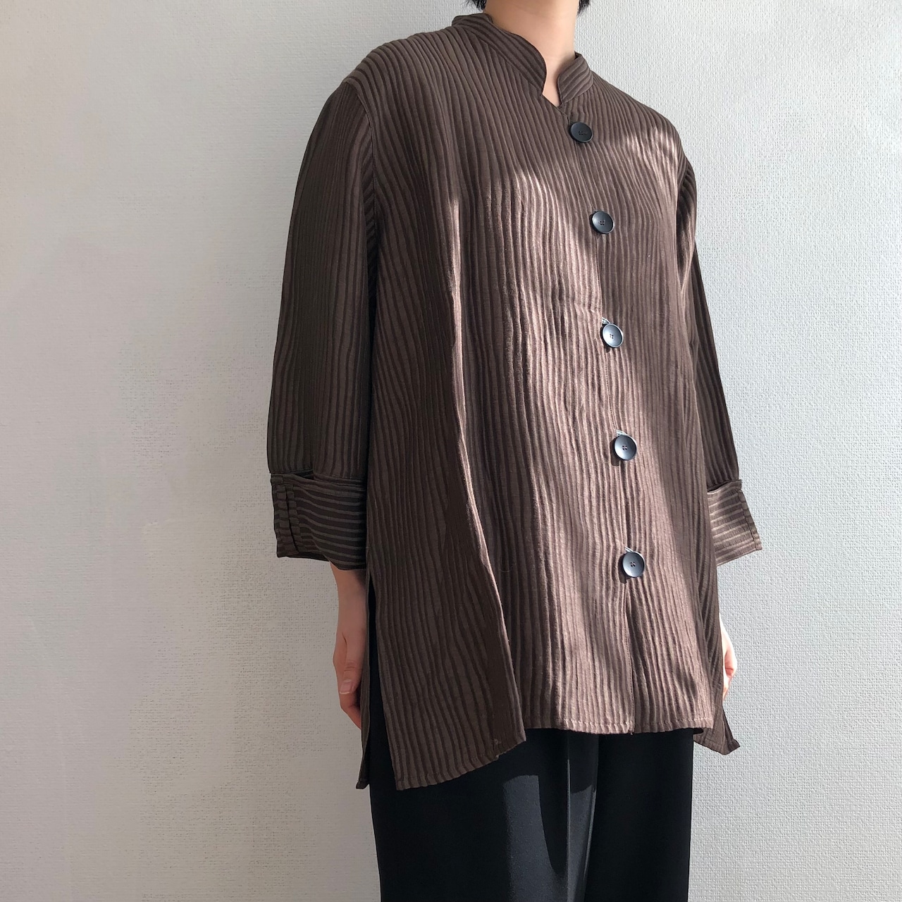 ウッドな生地感が面白い1着で、シルエットもとても良いです◎