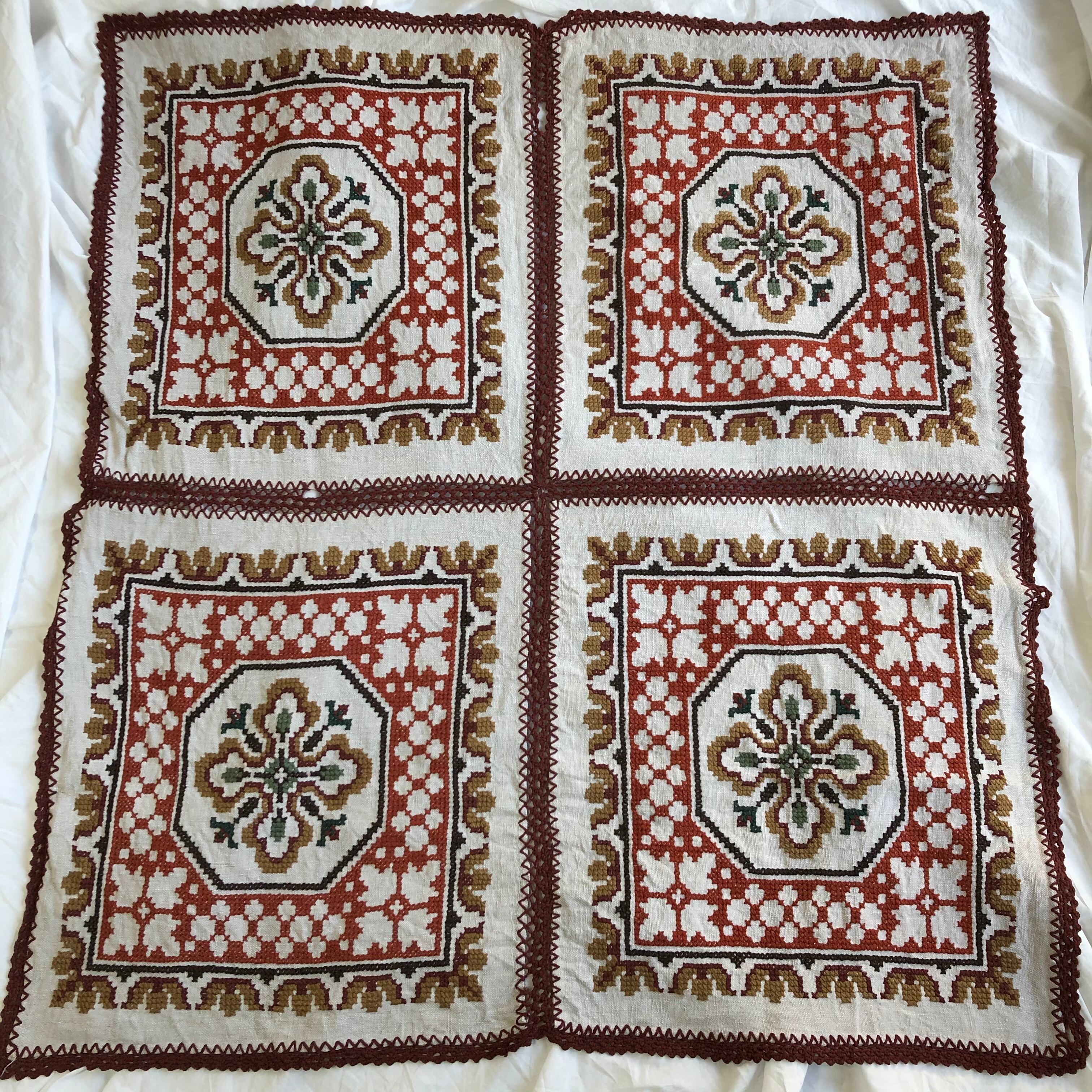 •ヨーロッパのパッチワーク刺繍リネン。