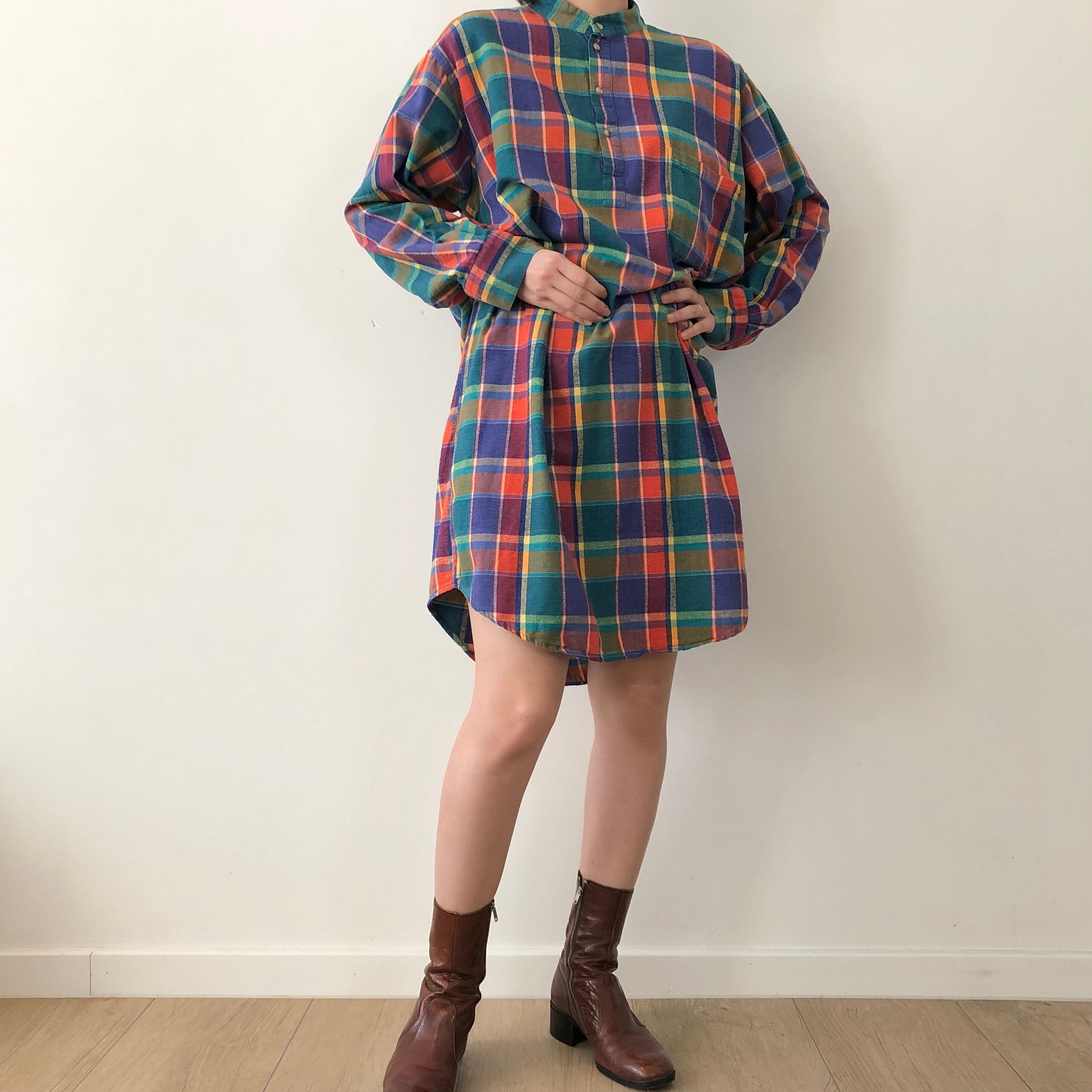Plaid shirt one piece