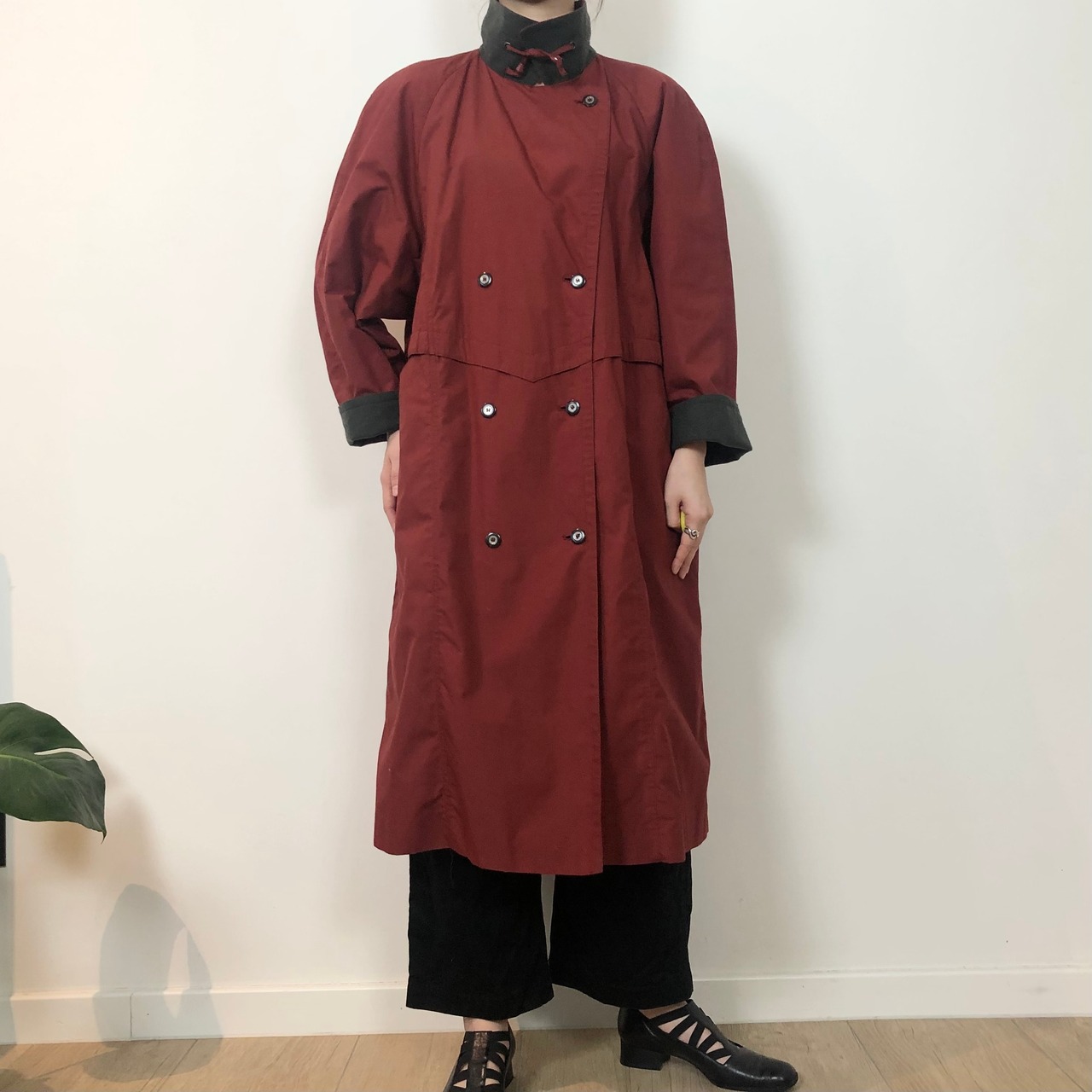 ・ユーロ古着でお馴染みC&Aのシルエットが美しいボルドーカラーのコートです◎