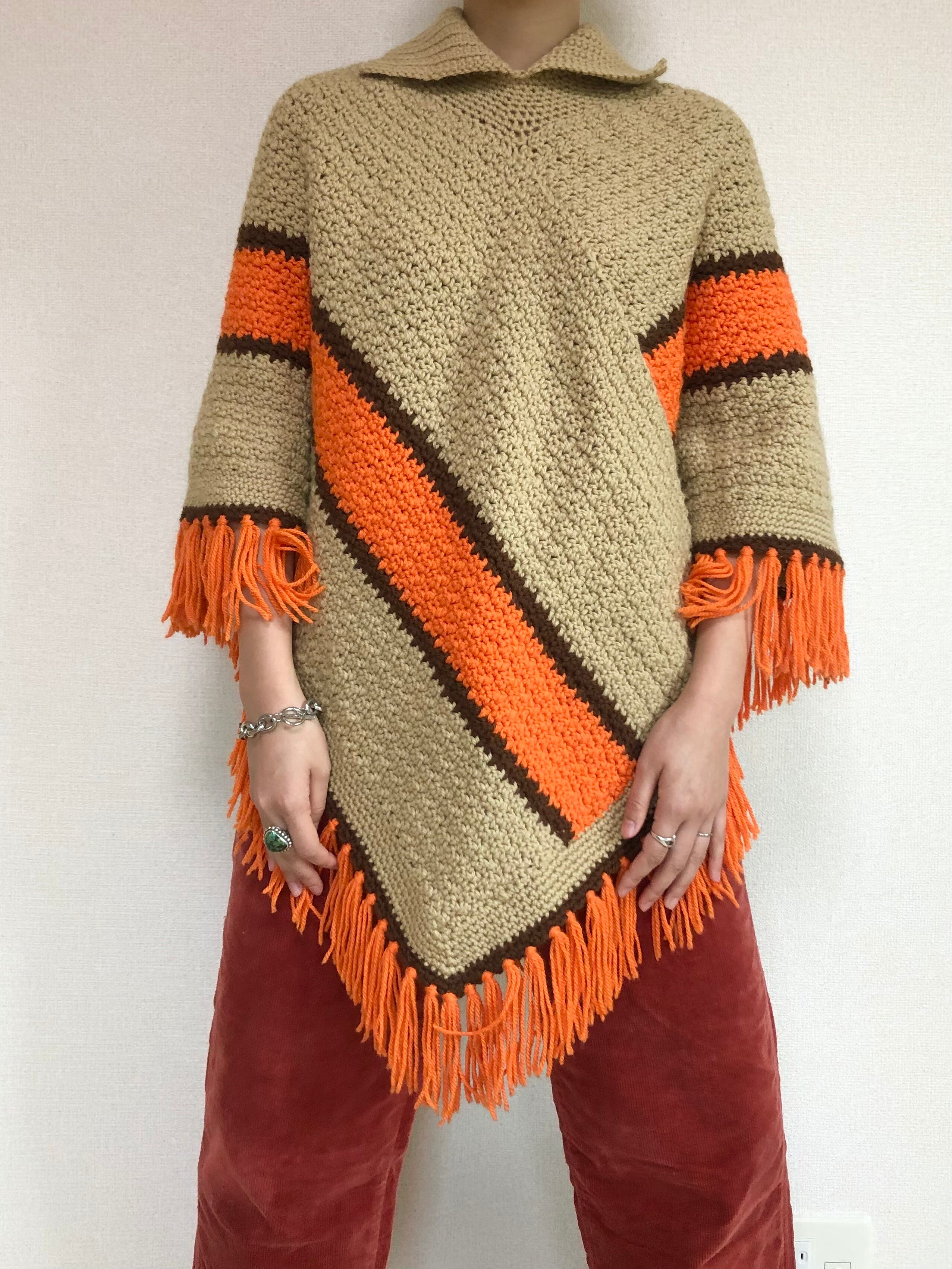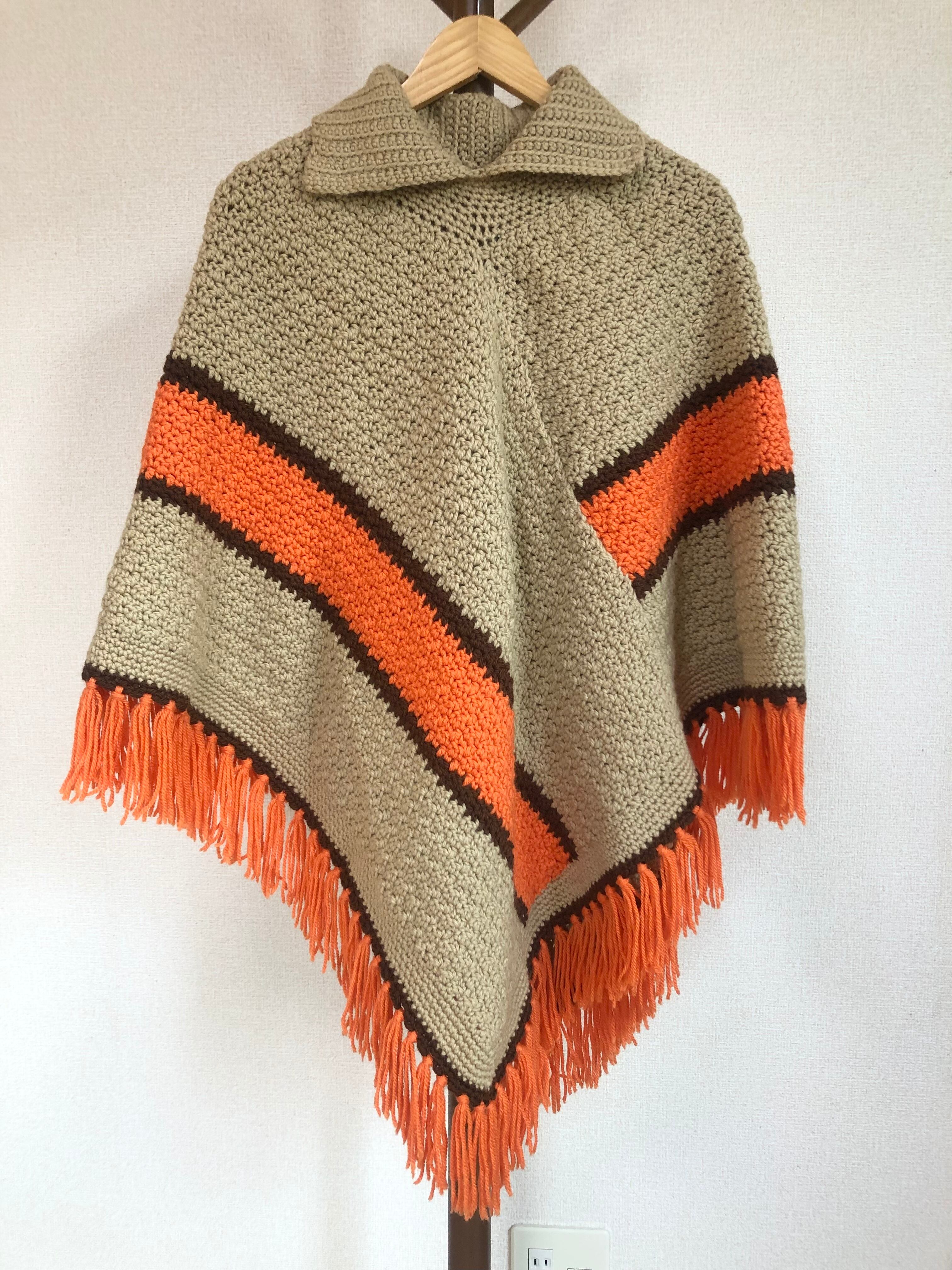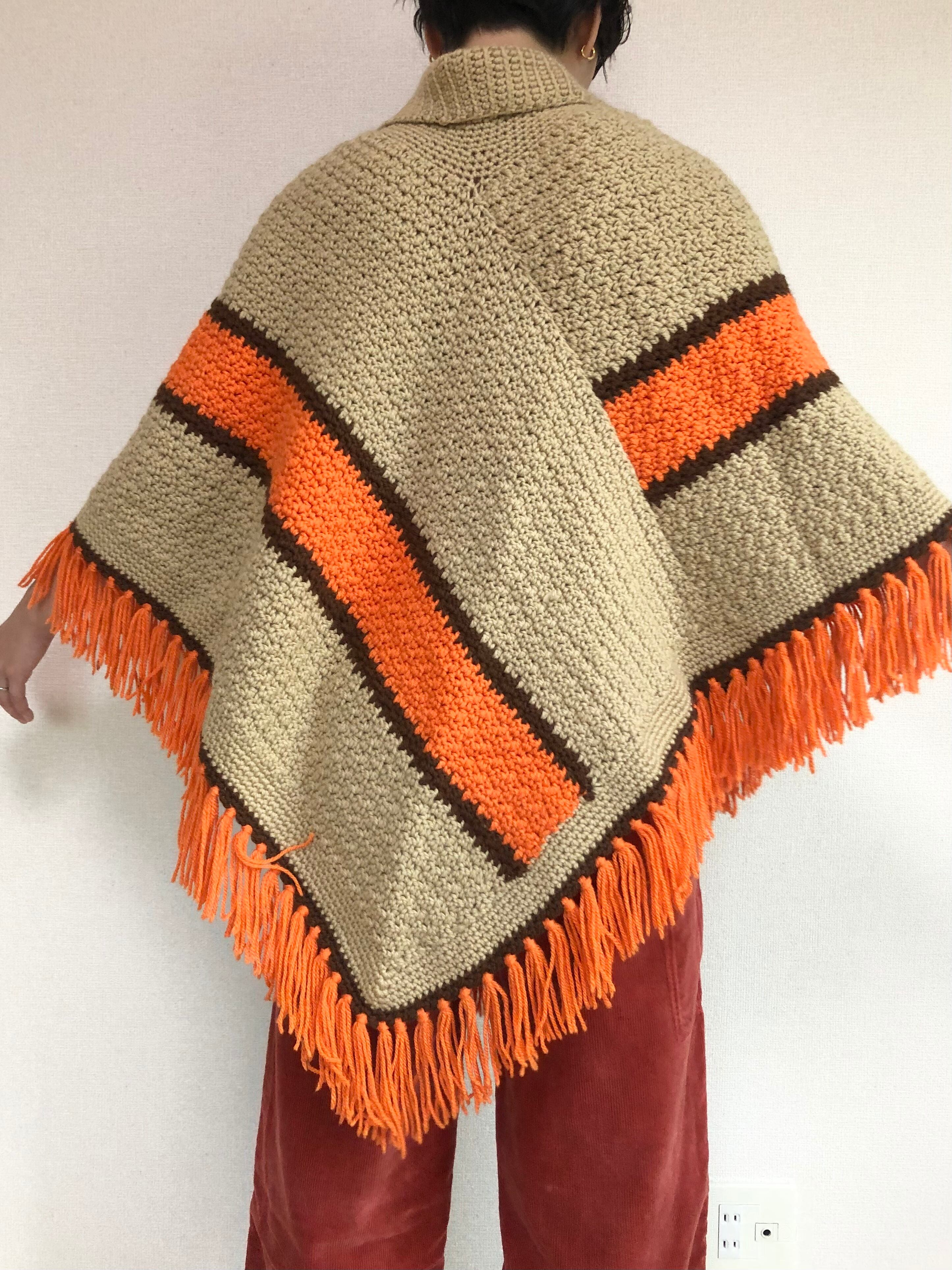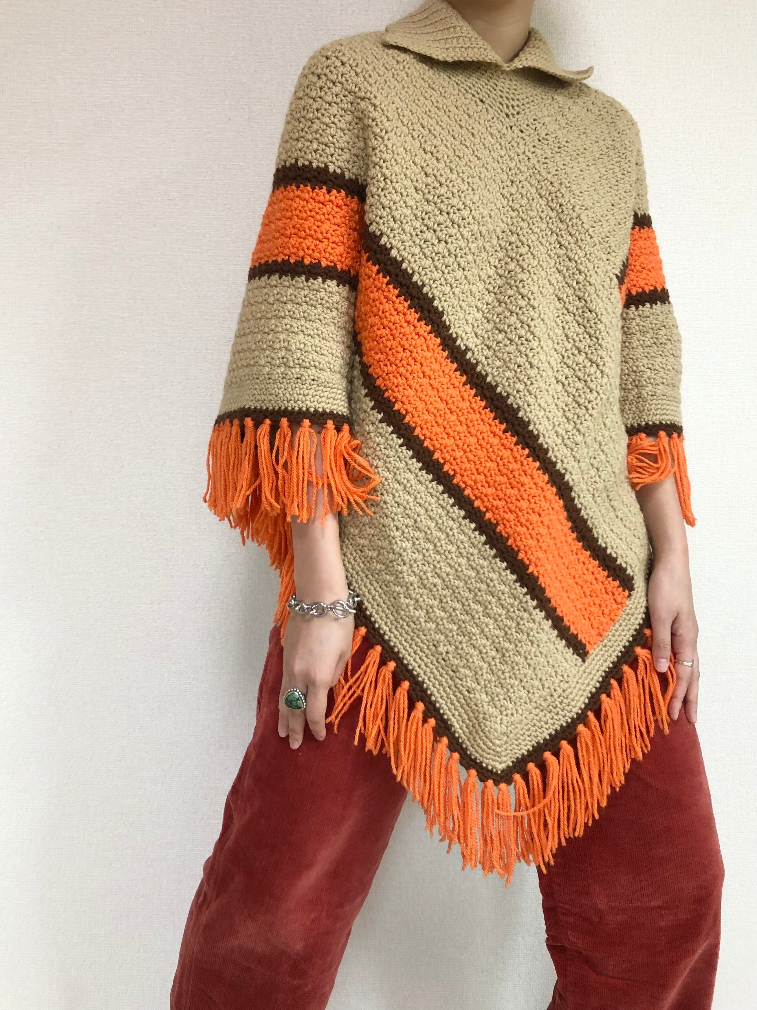•ハンドメイドのフリンジニットポンチョ◎