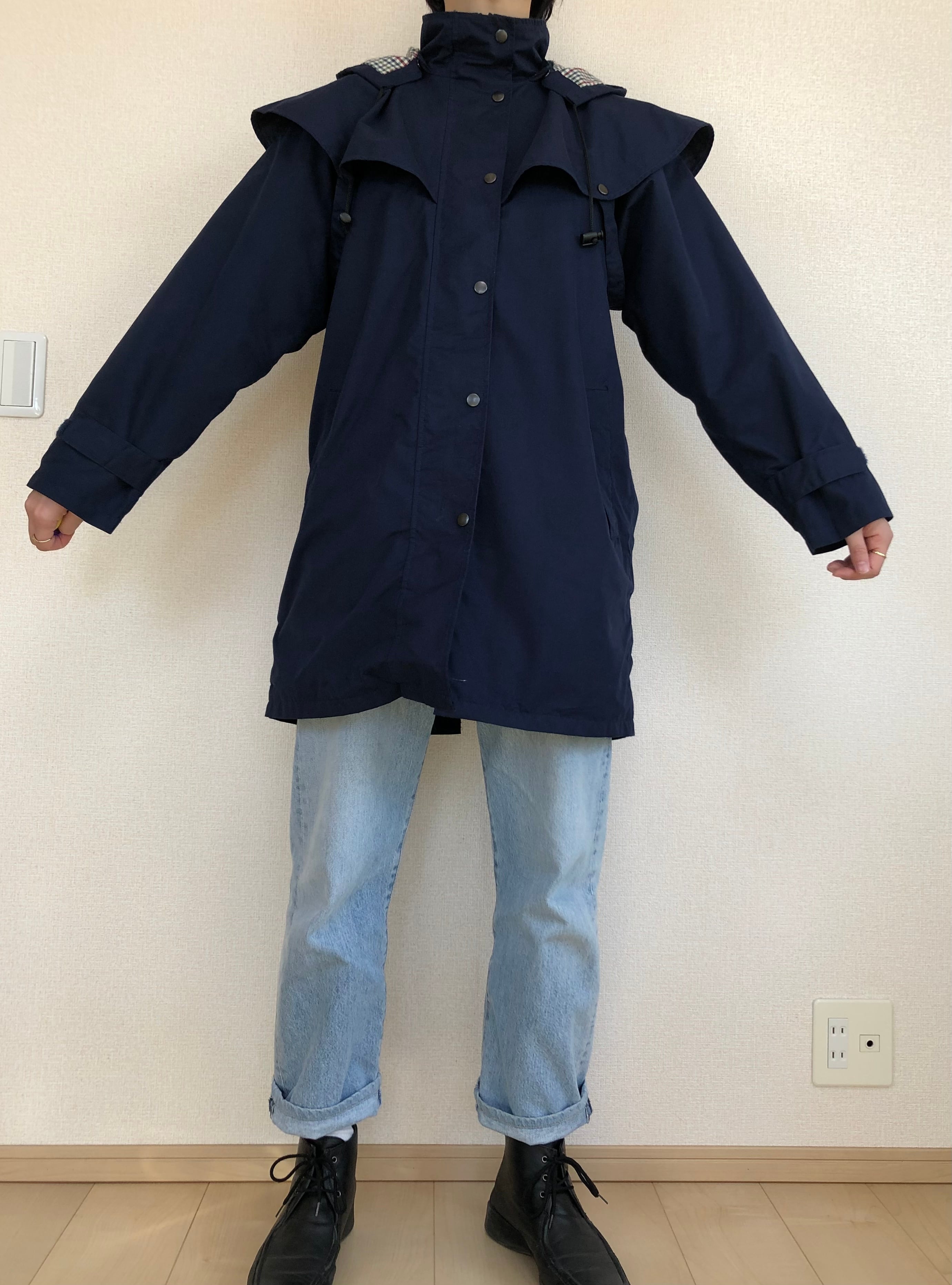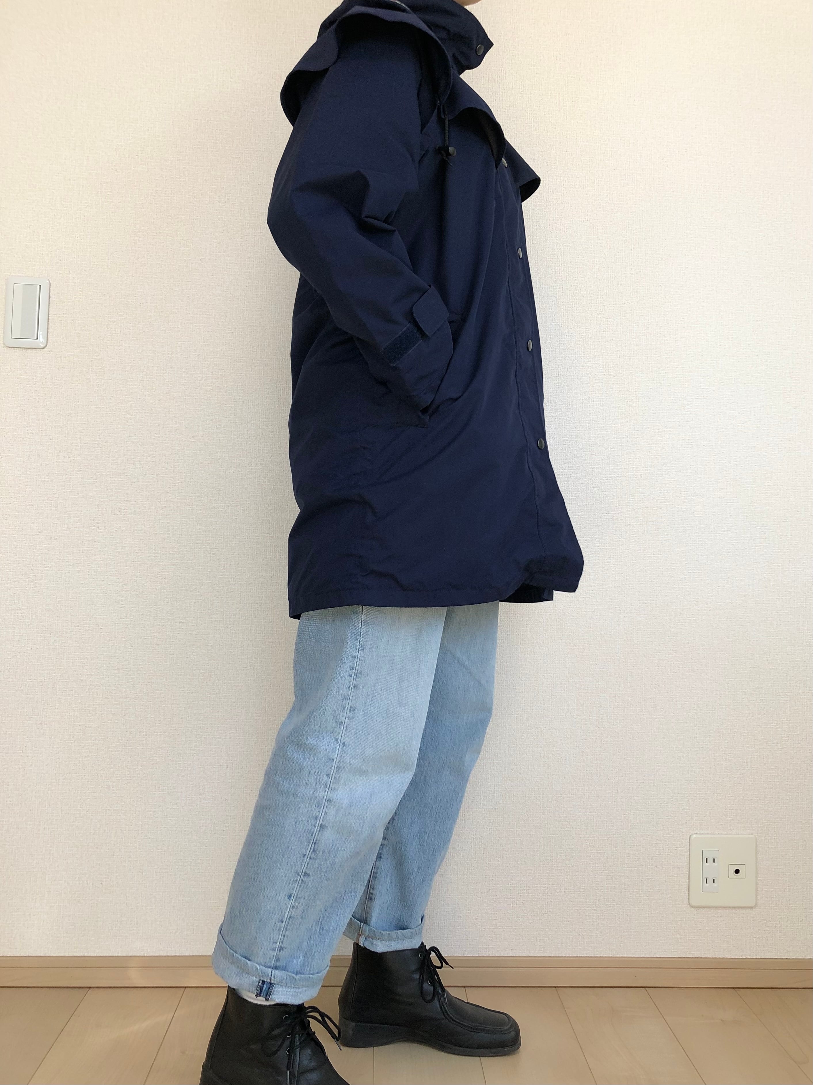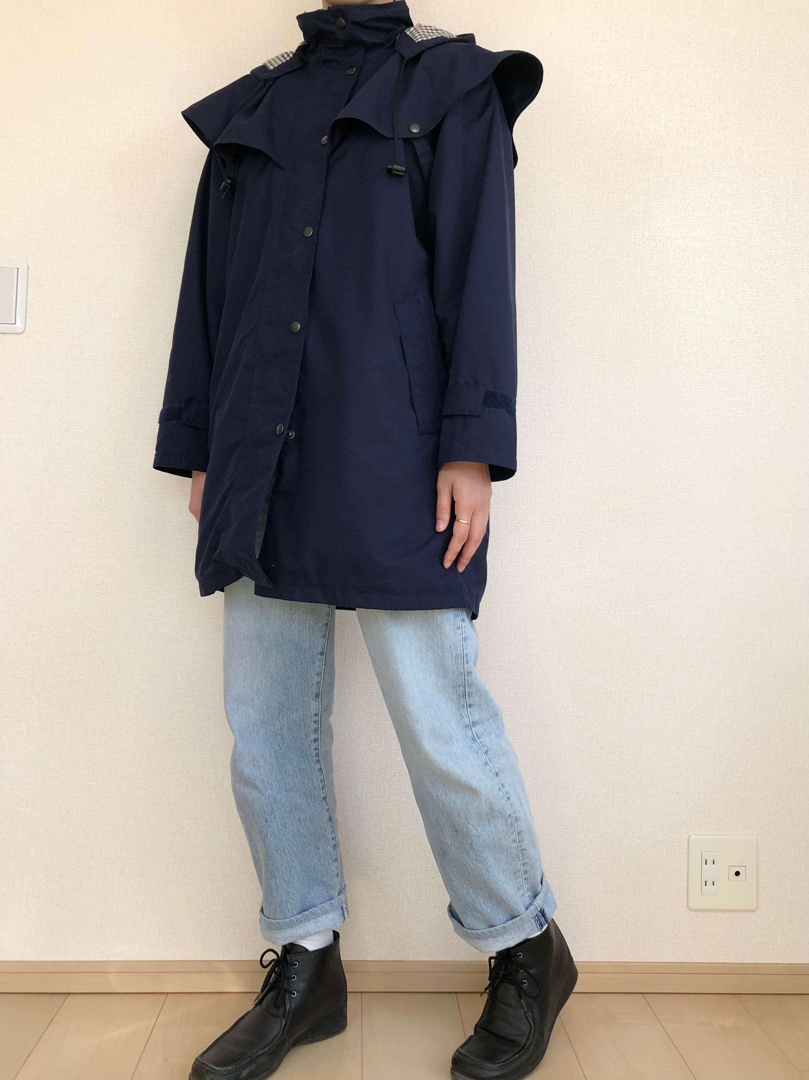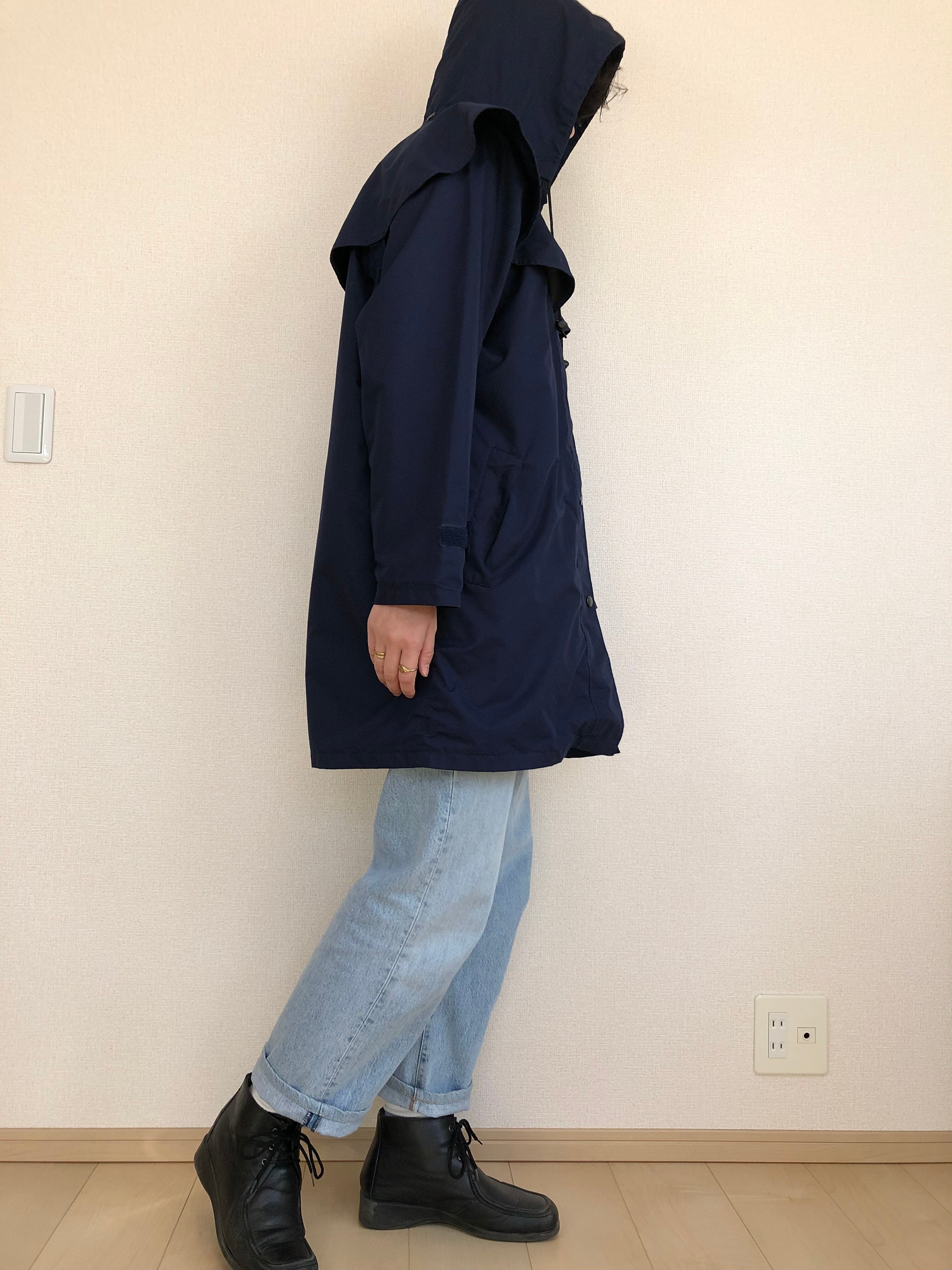 •ネイビーのフード付きコート◎