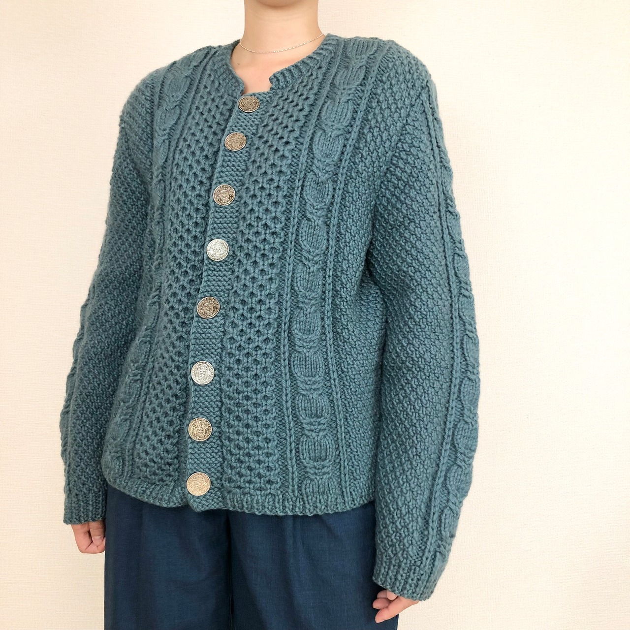 •ずっしりとした重量で暖かい手編みカーディガンです◎
