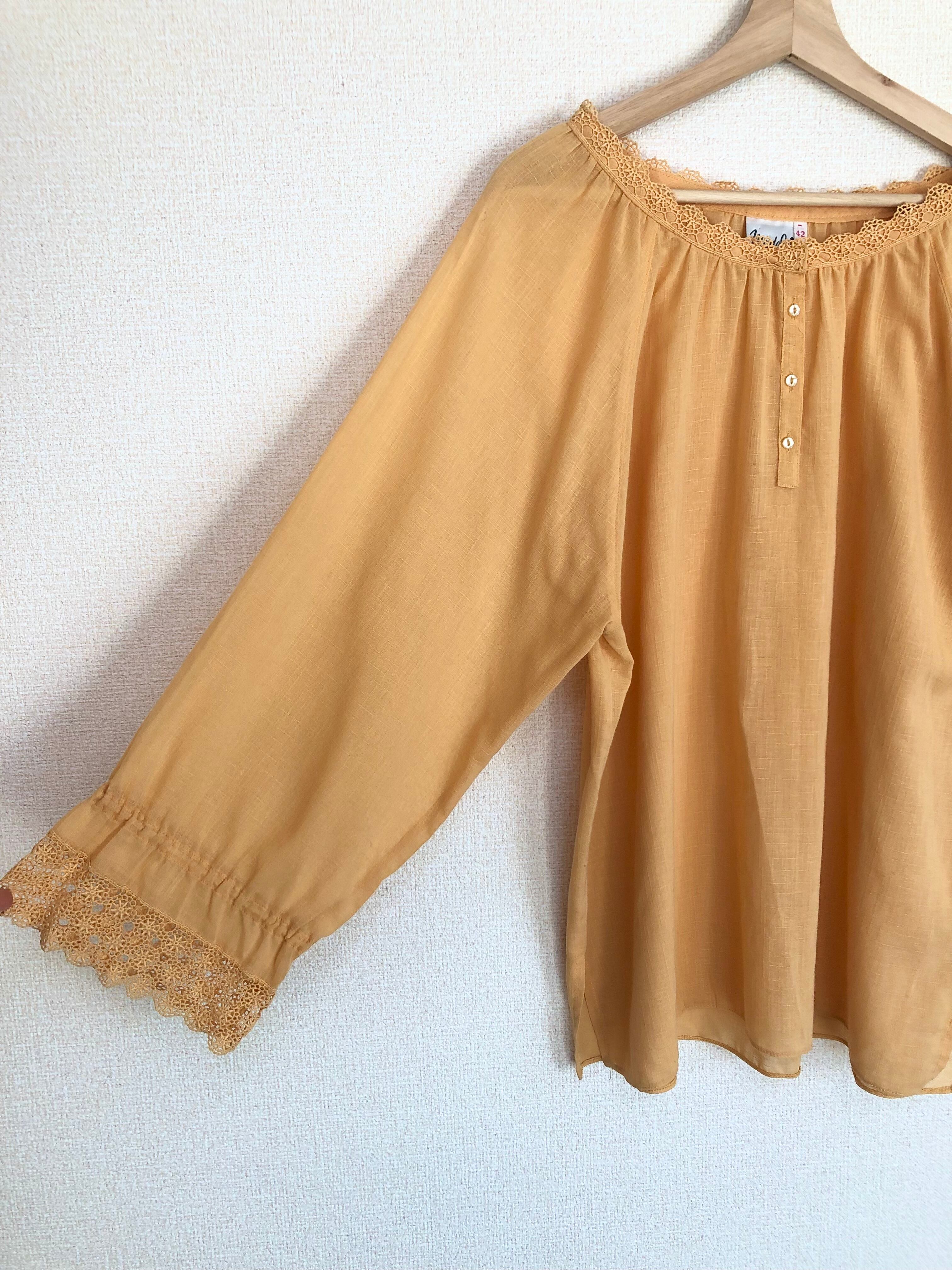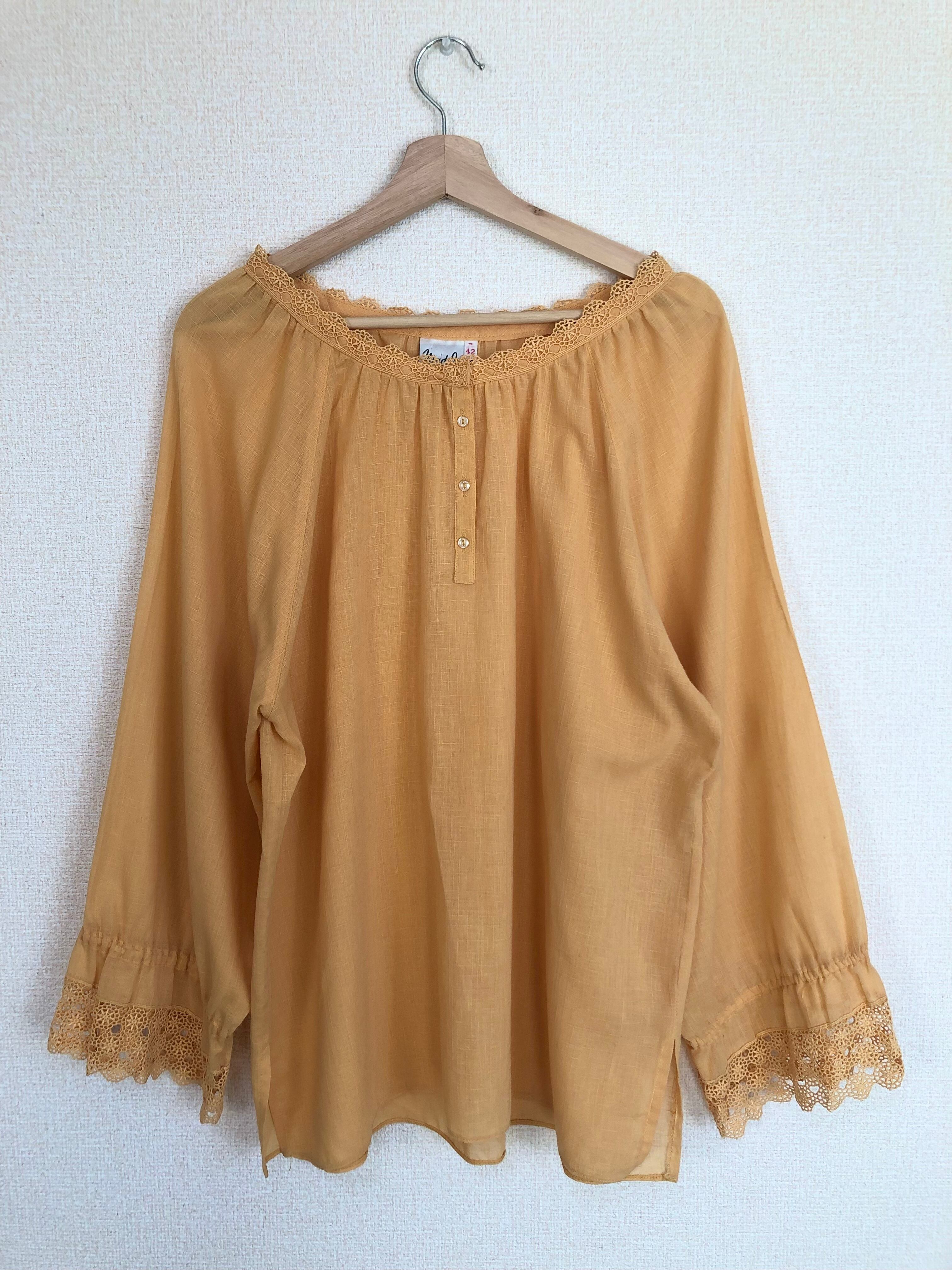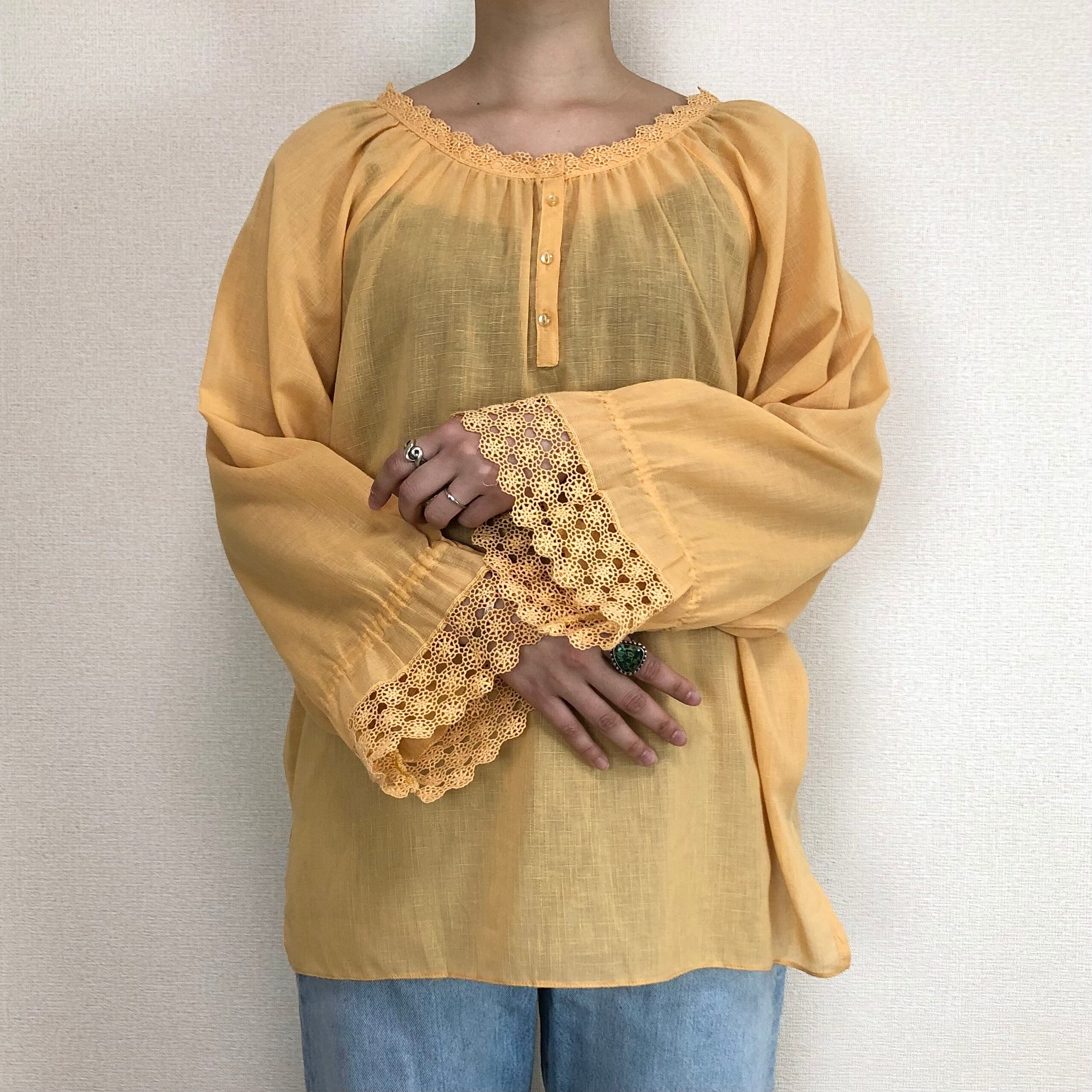 •襟、袖のレースが可愛いイエローブラウスです◎