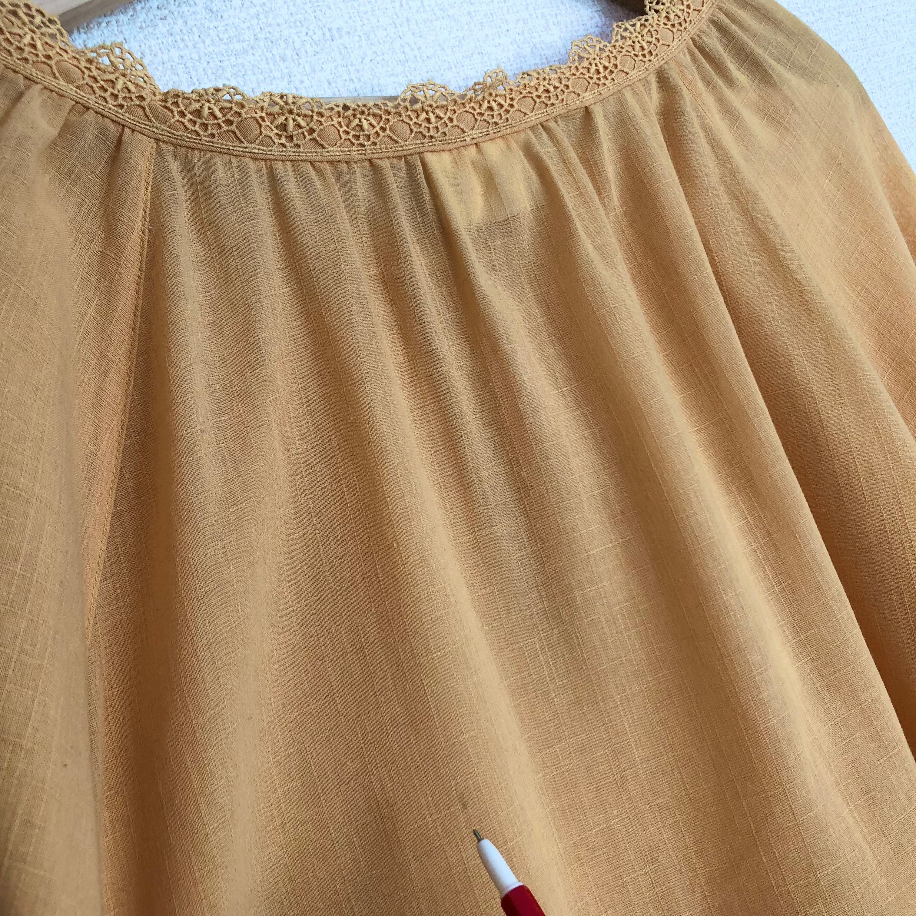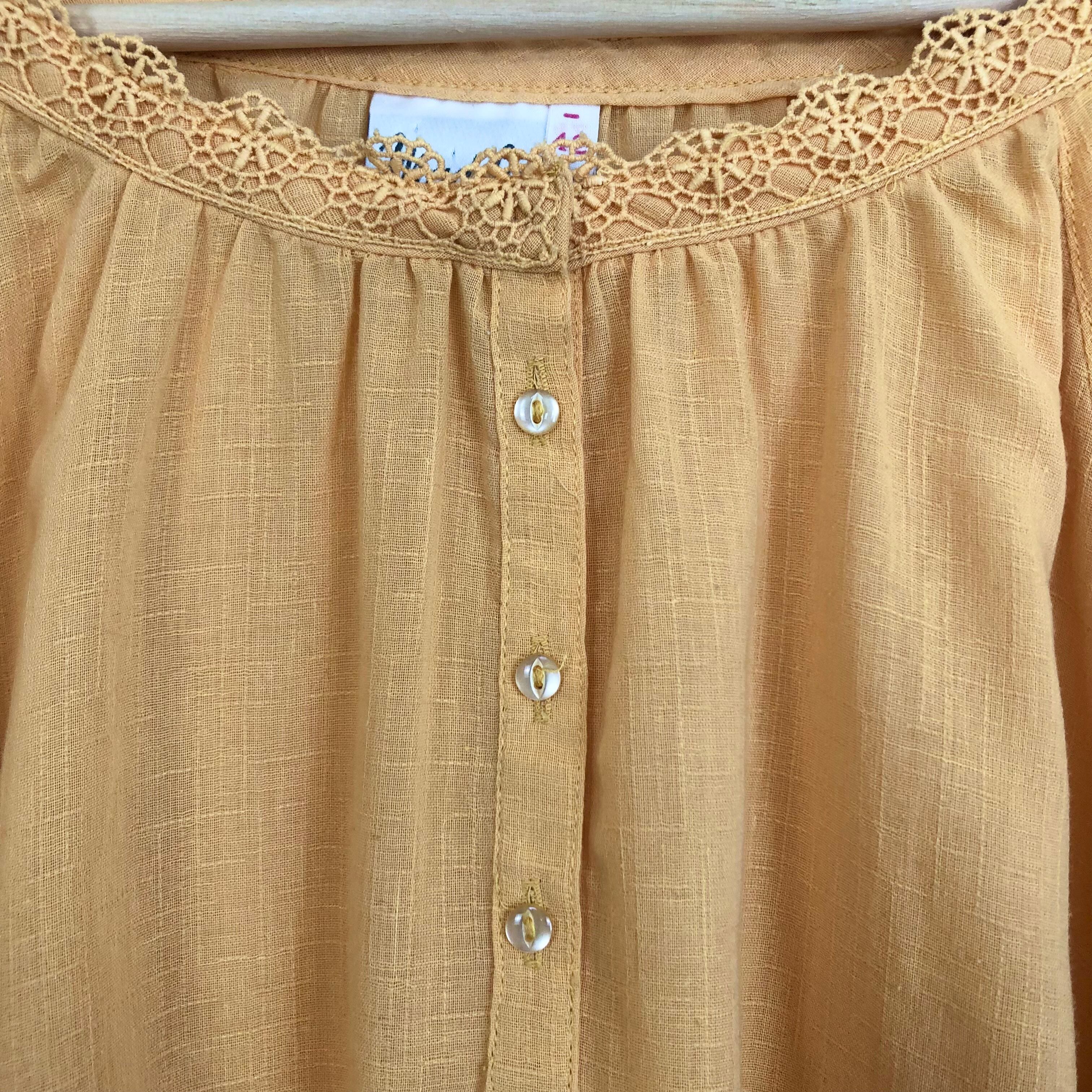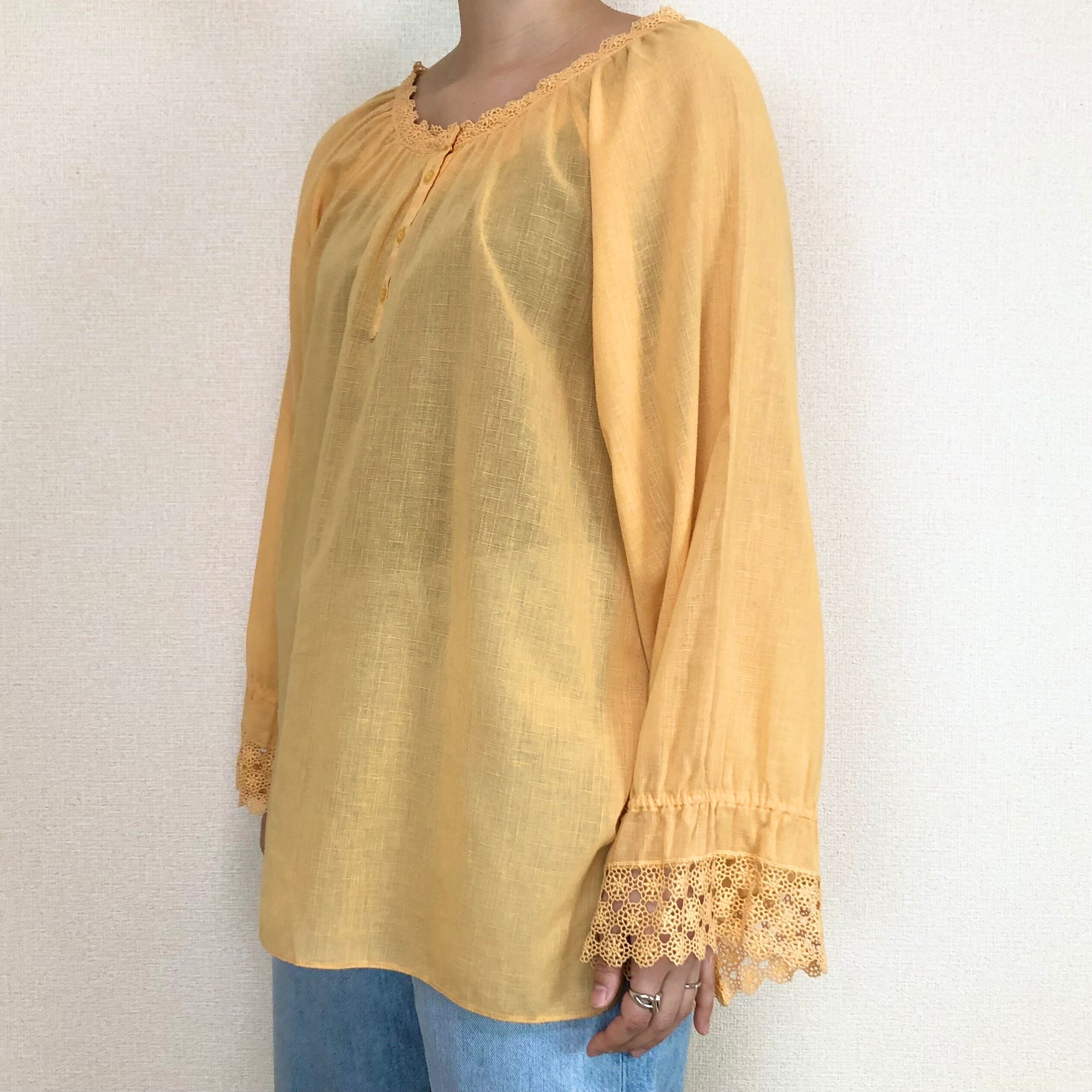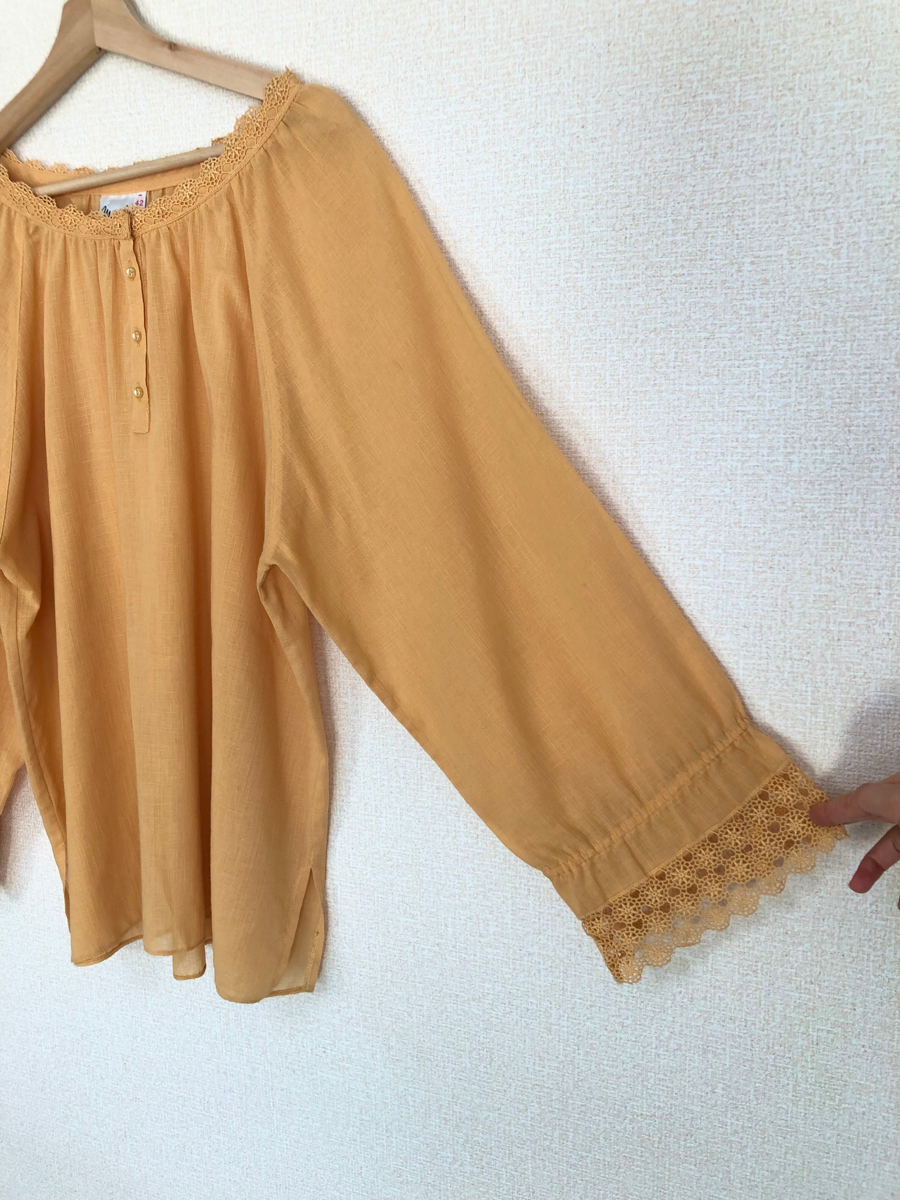 •襟、袖のレースが可愛いイエローブラウスです◎