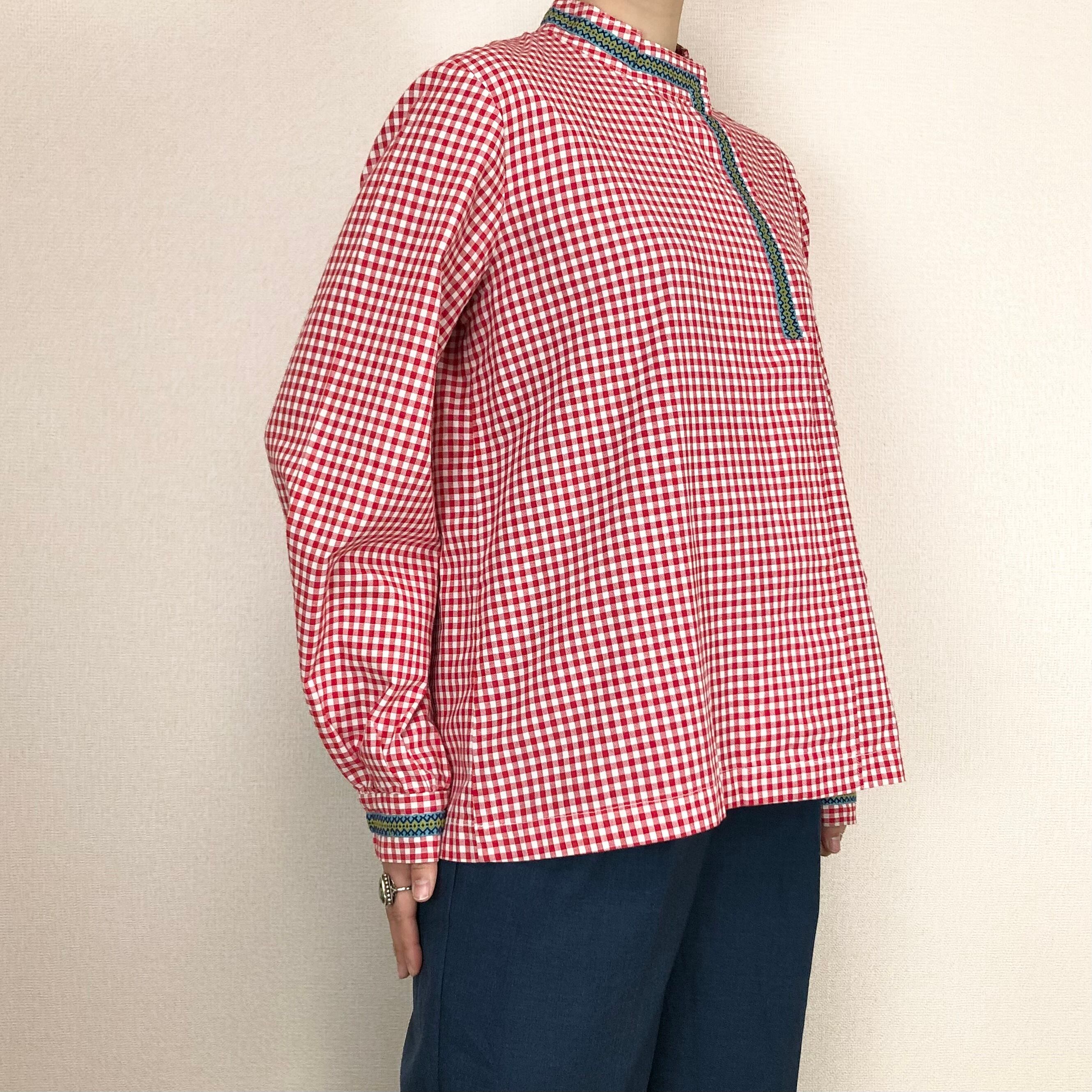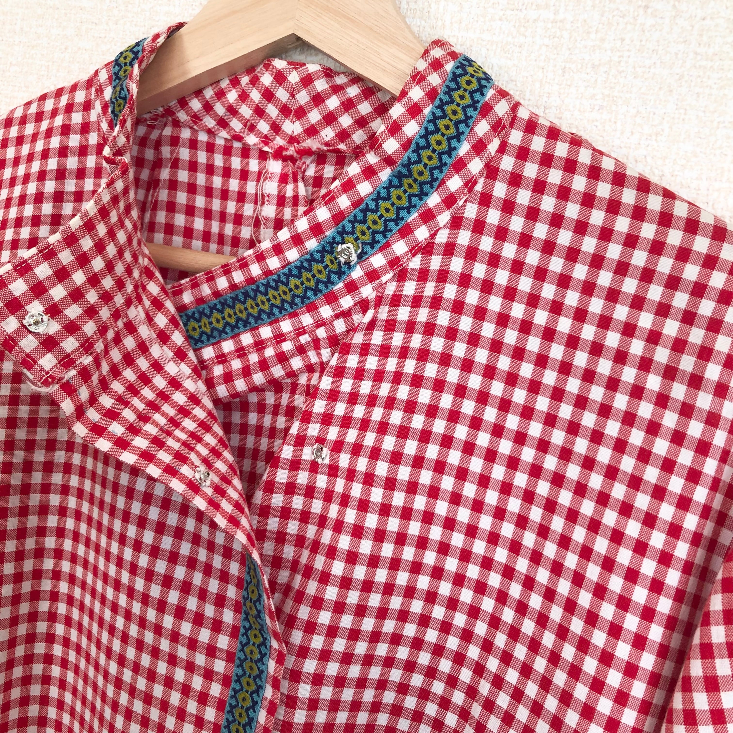 •ギンガムチェック×刺繍テープがかわいいプルオーバーです◎