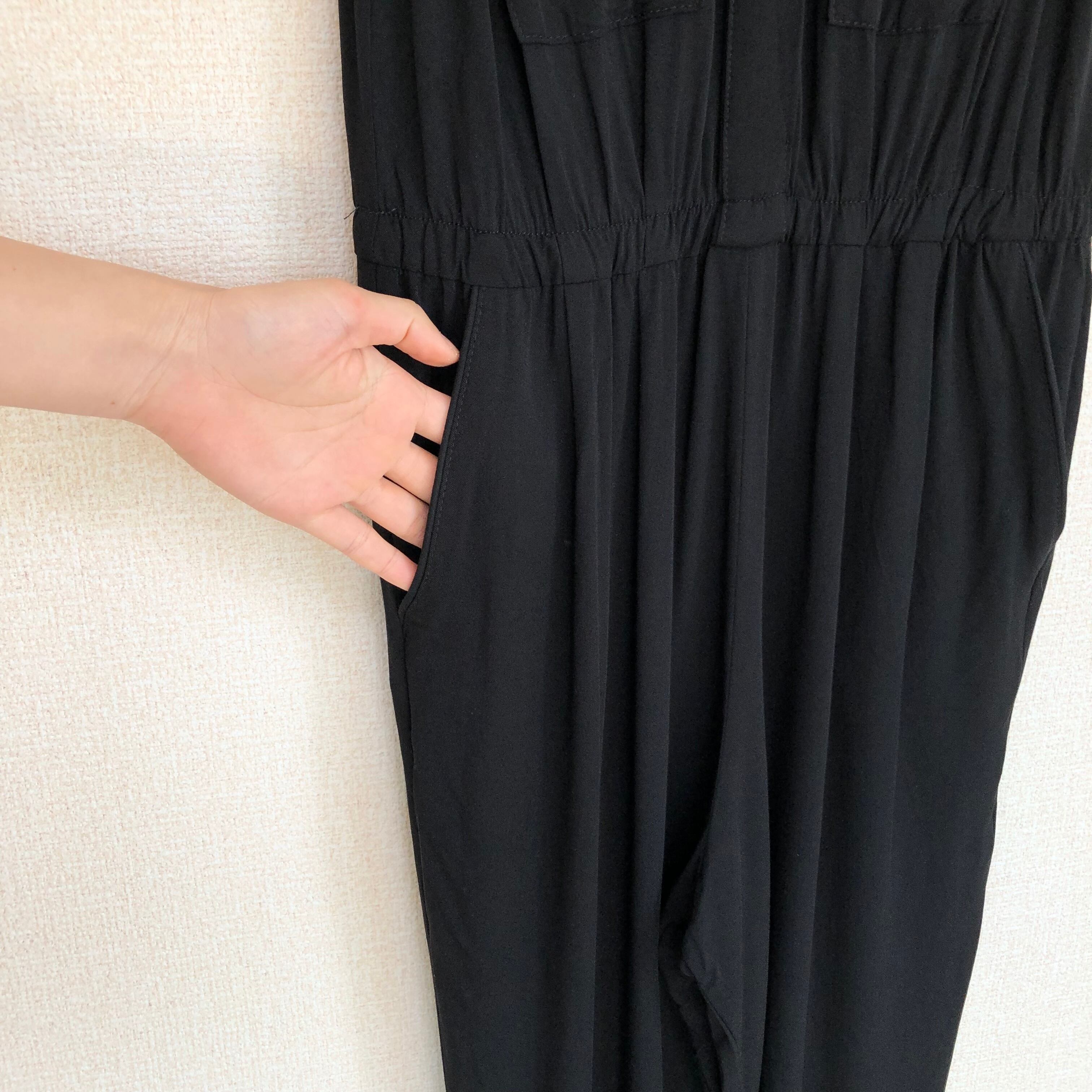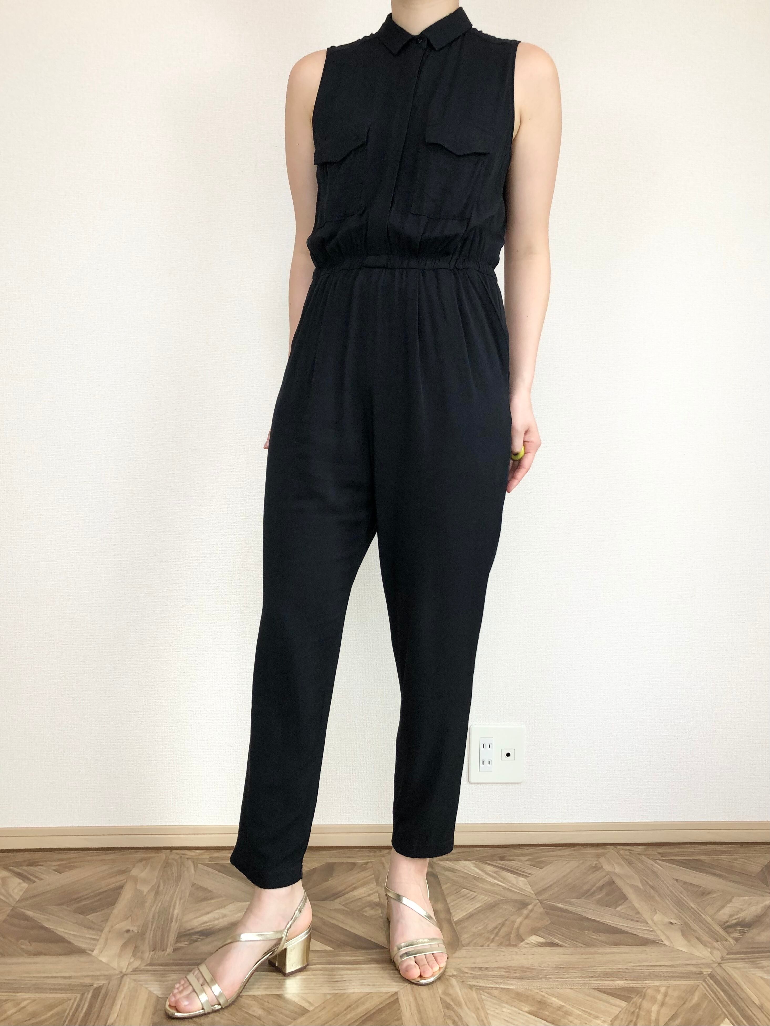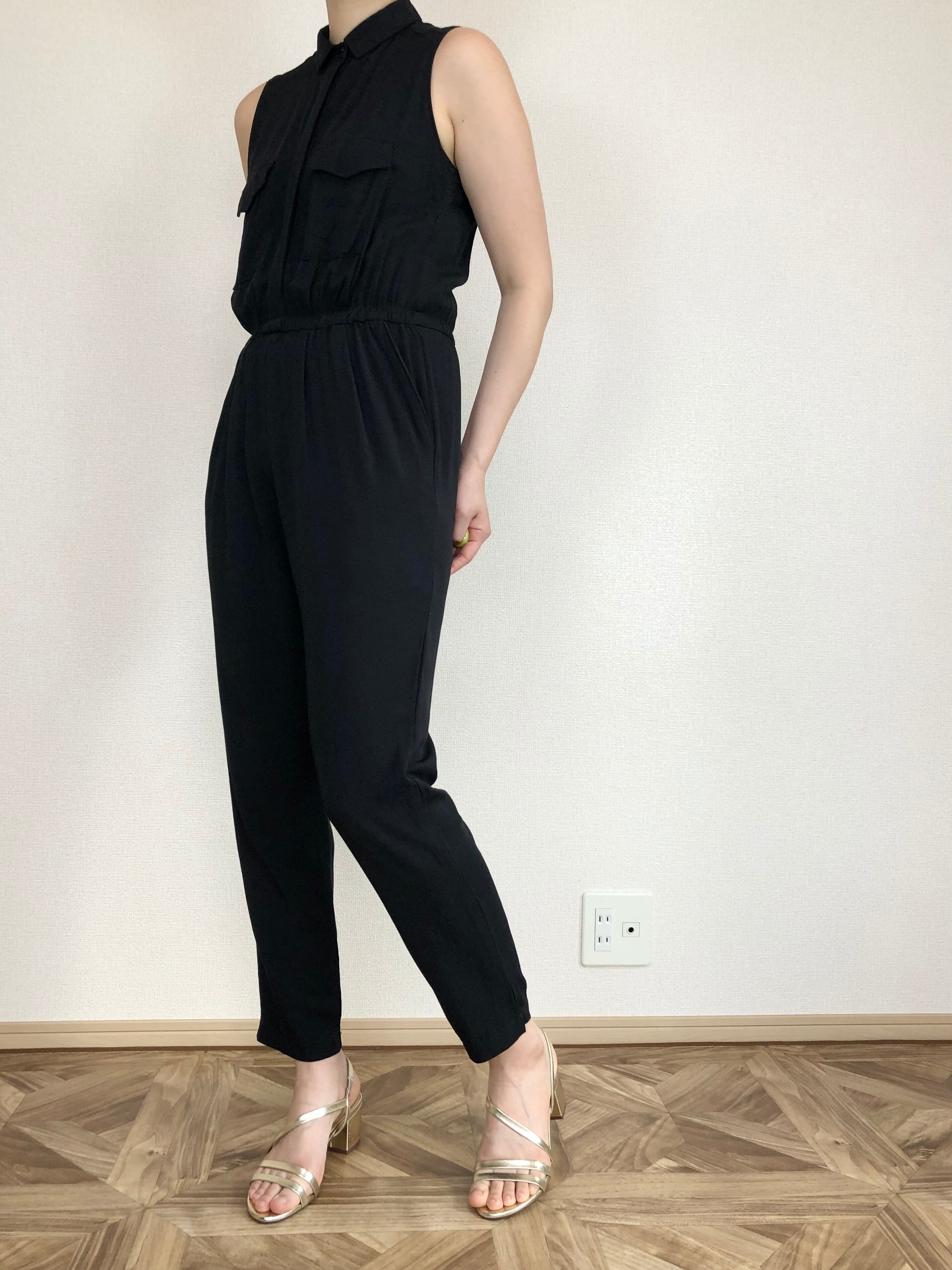 •てろっとした素材で着心地のいい、ノースリーブオールインワン◎