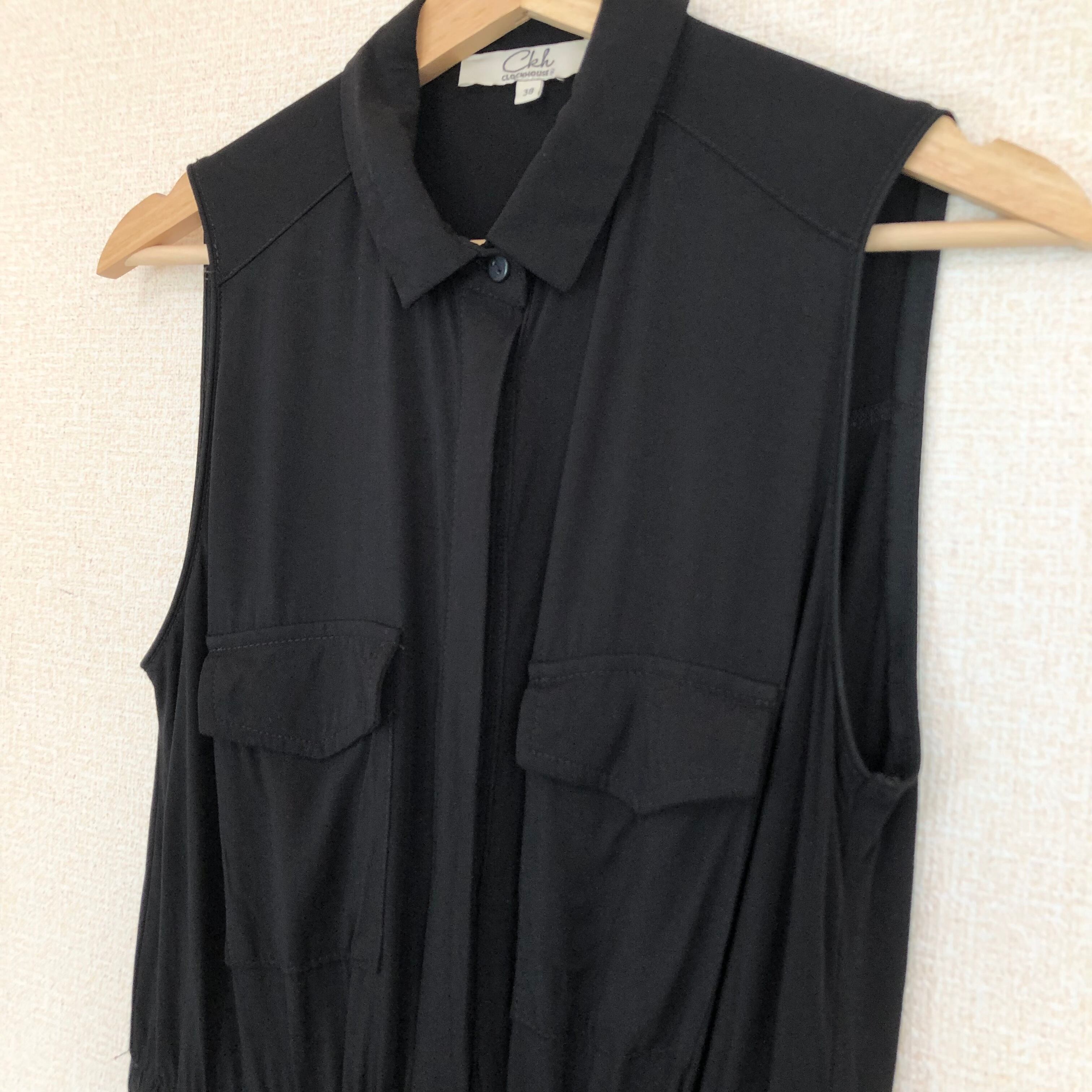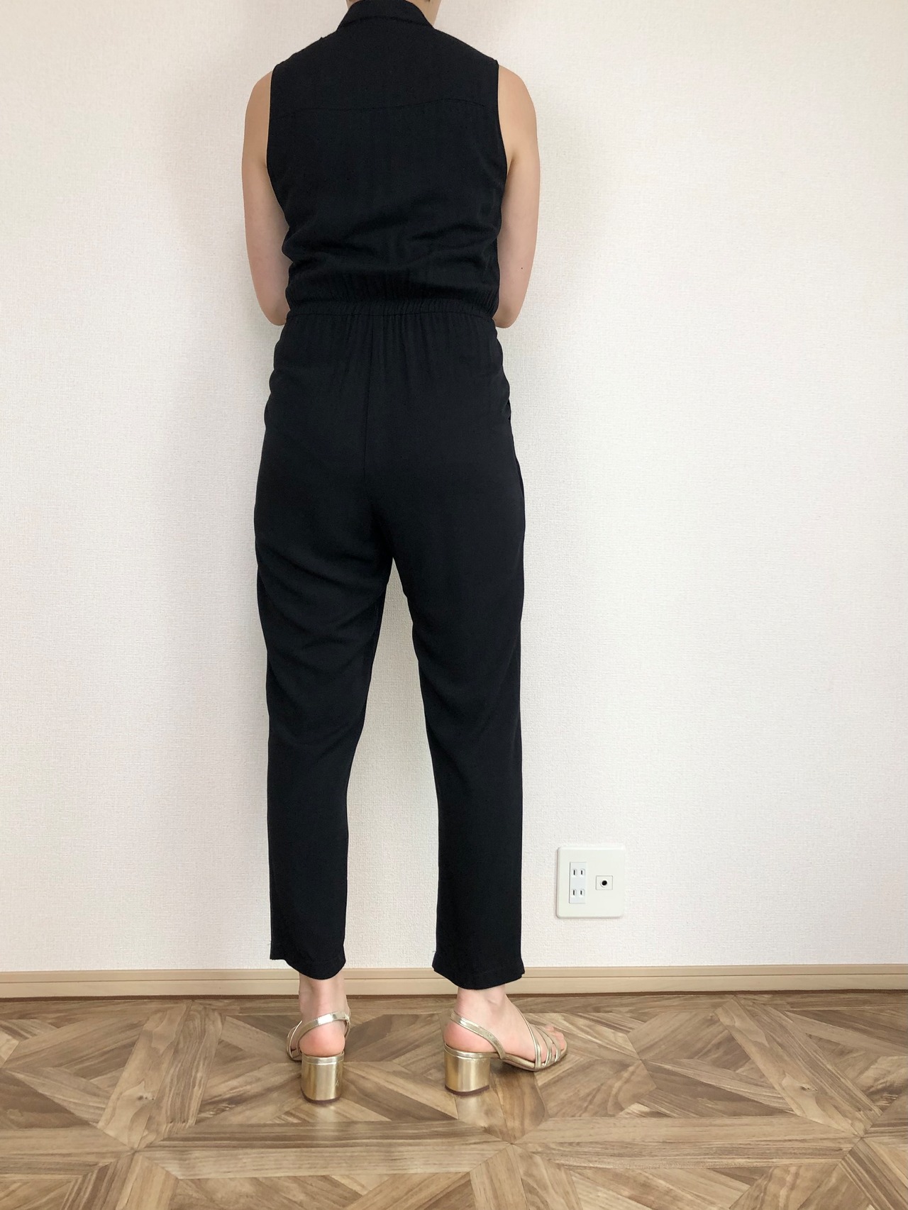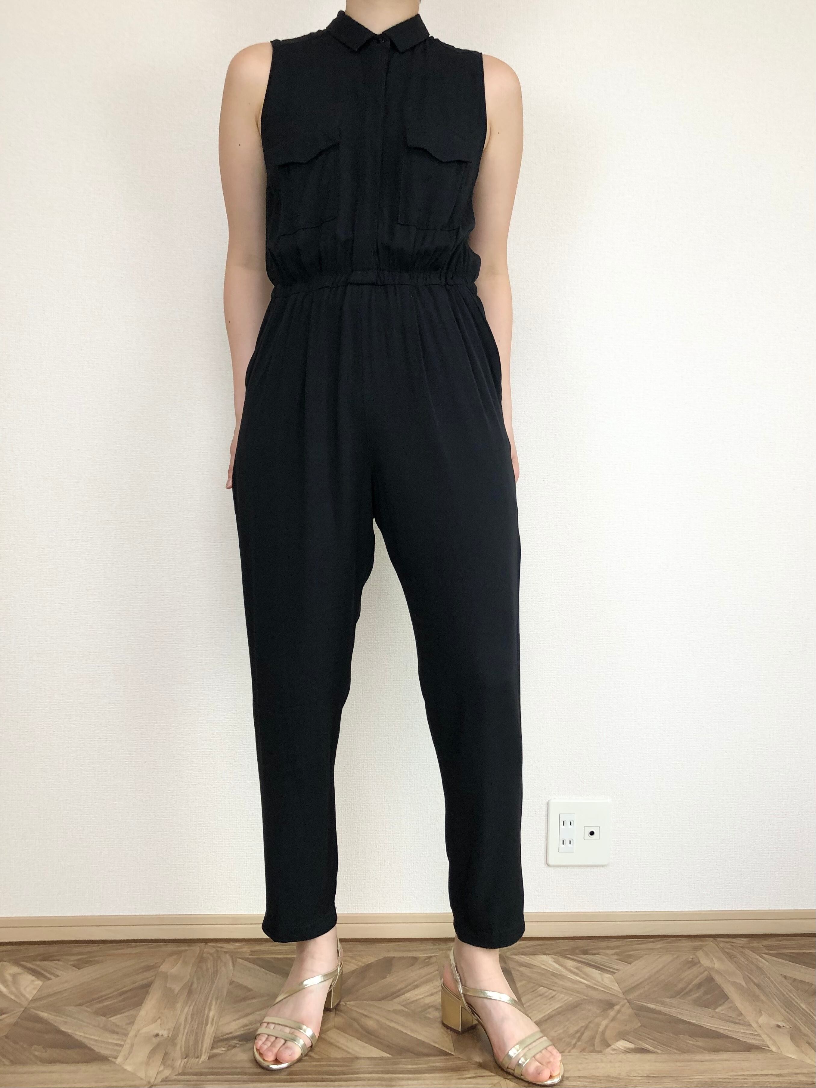 •てろっとした素材で着心地のいい、ノースリーブオールインワン◎