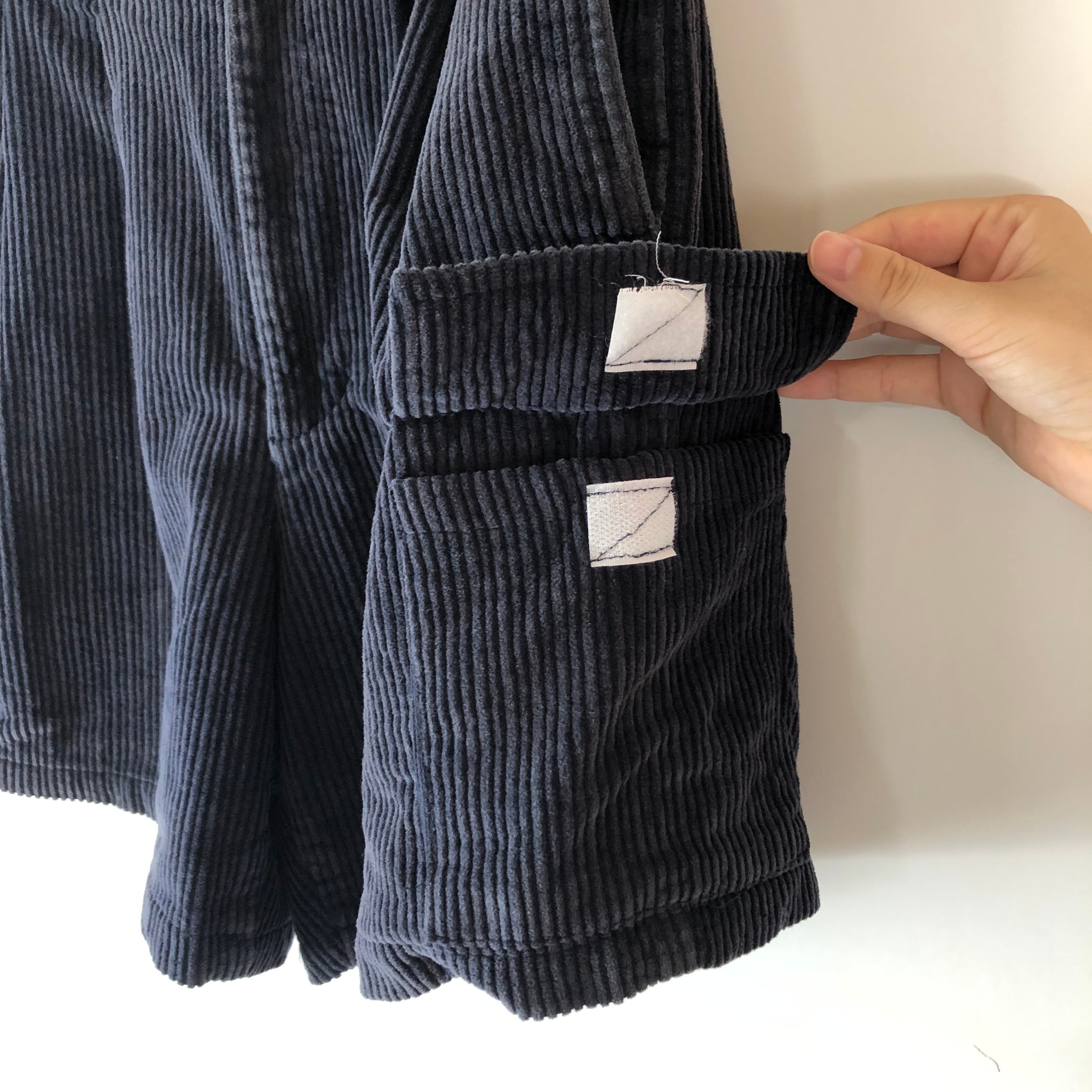 作りを見ると大きいコーデュロイパンツが小さいサイズにリメイクされた様子。