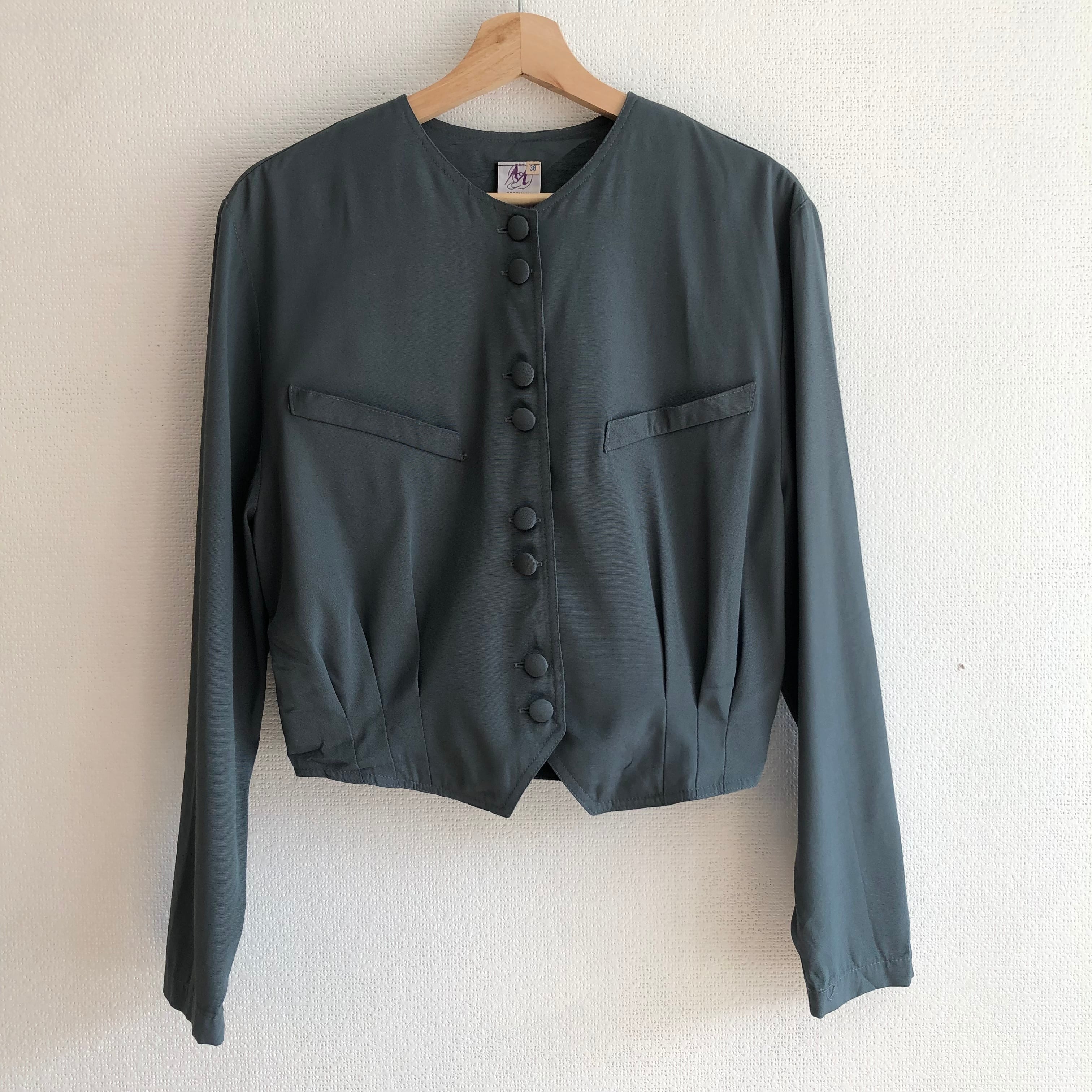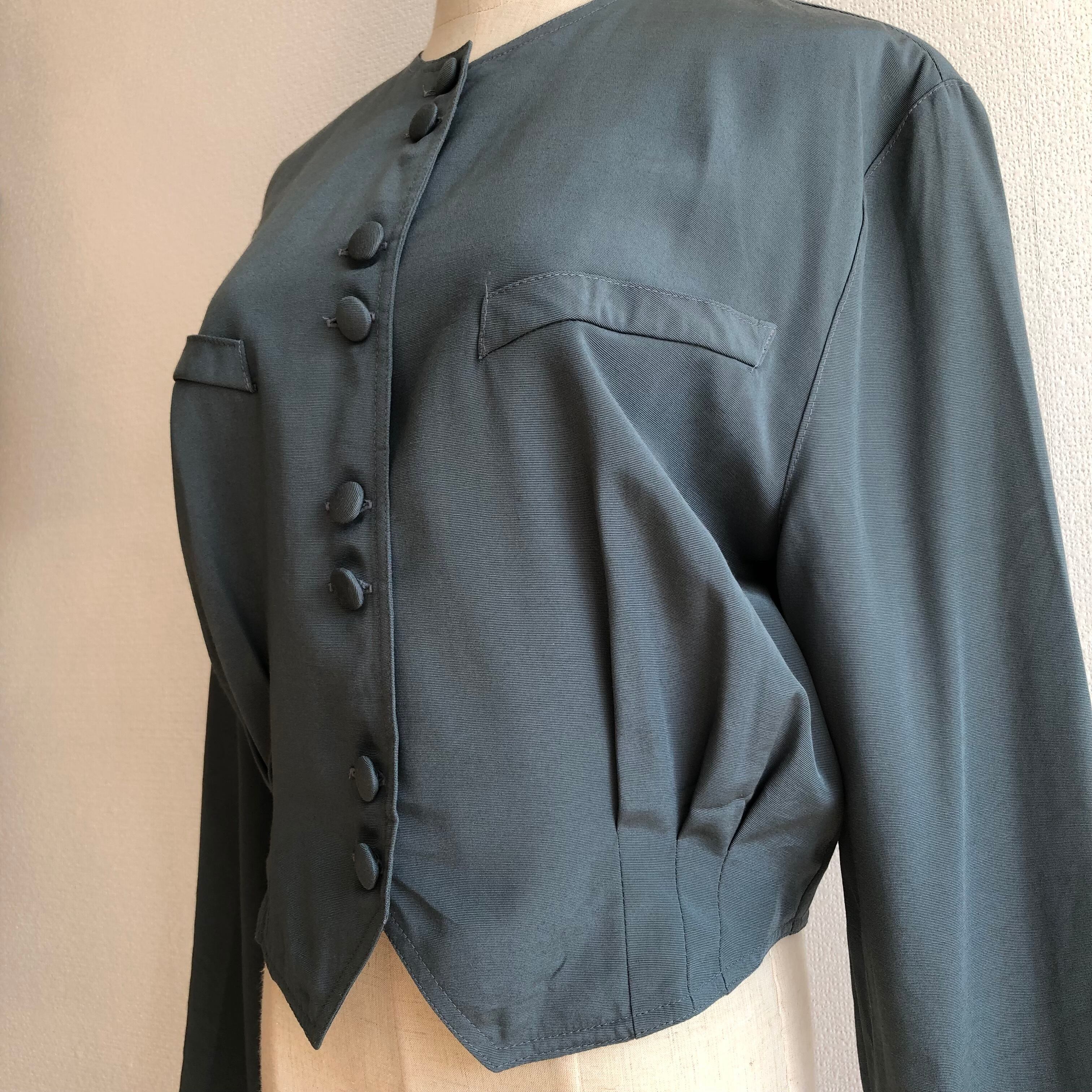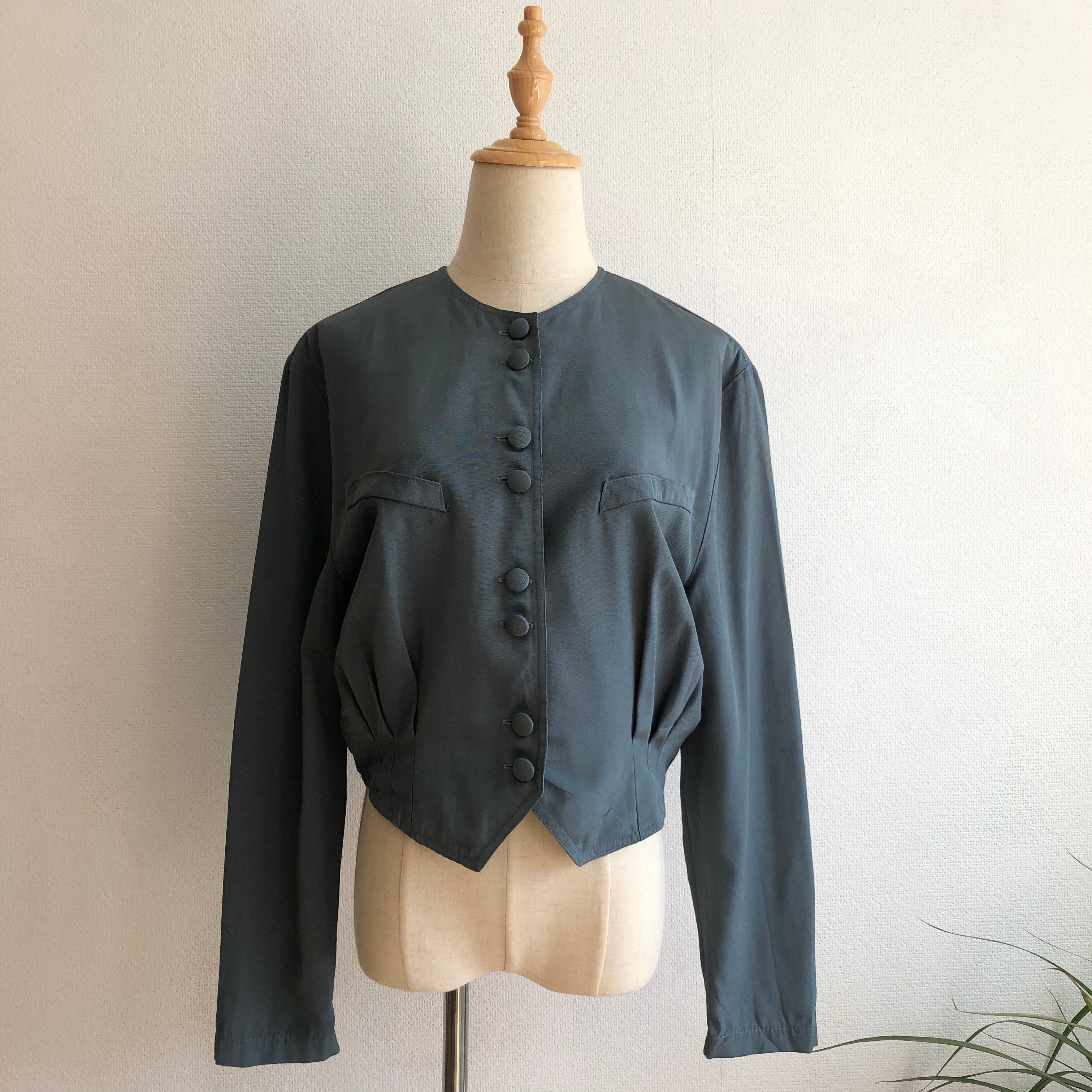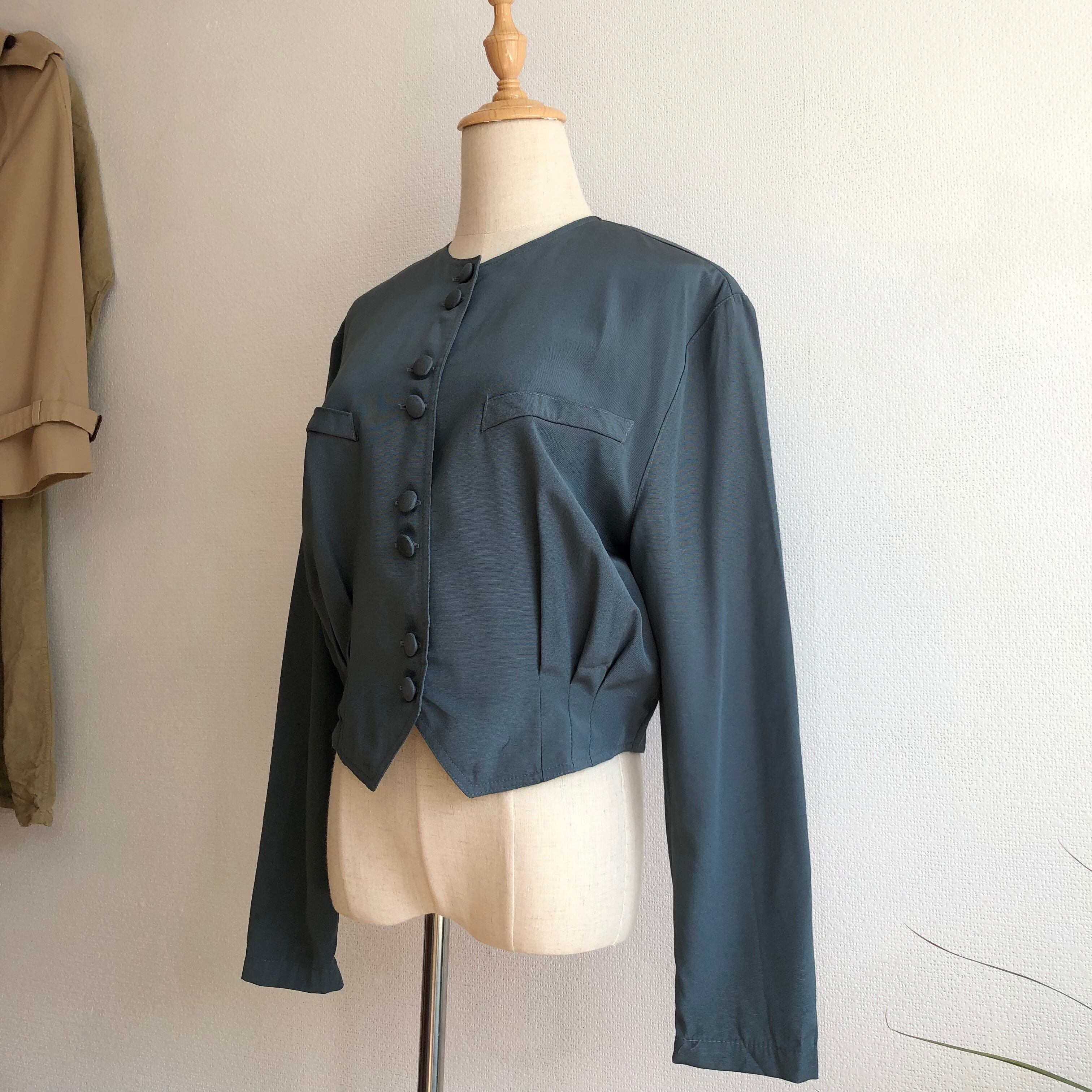 •ブルーとグレーを混ぜた様な美しい絶妙な色味のショートジャケットです◎