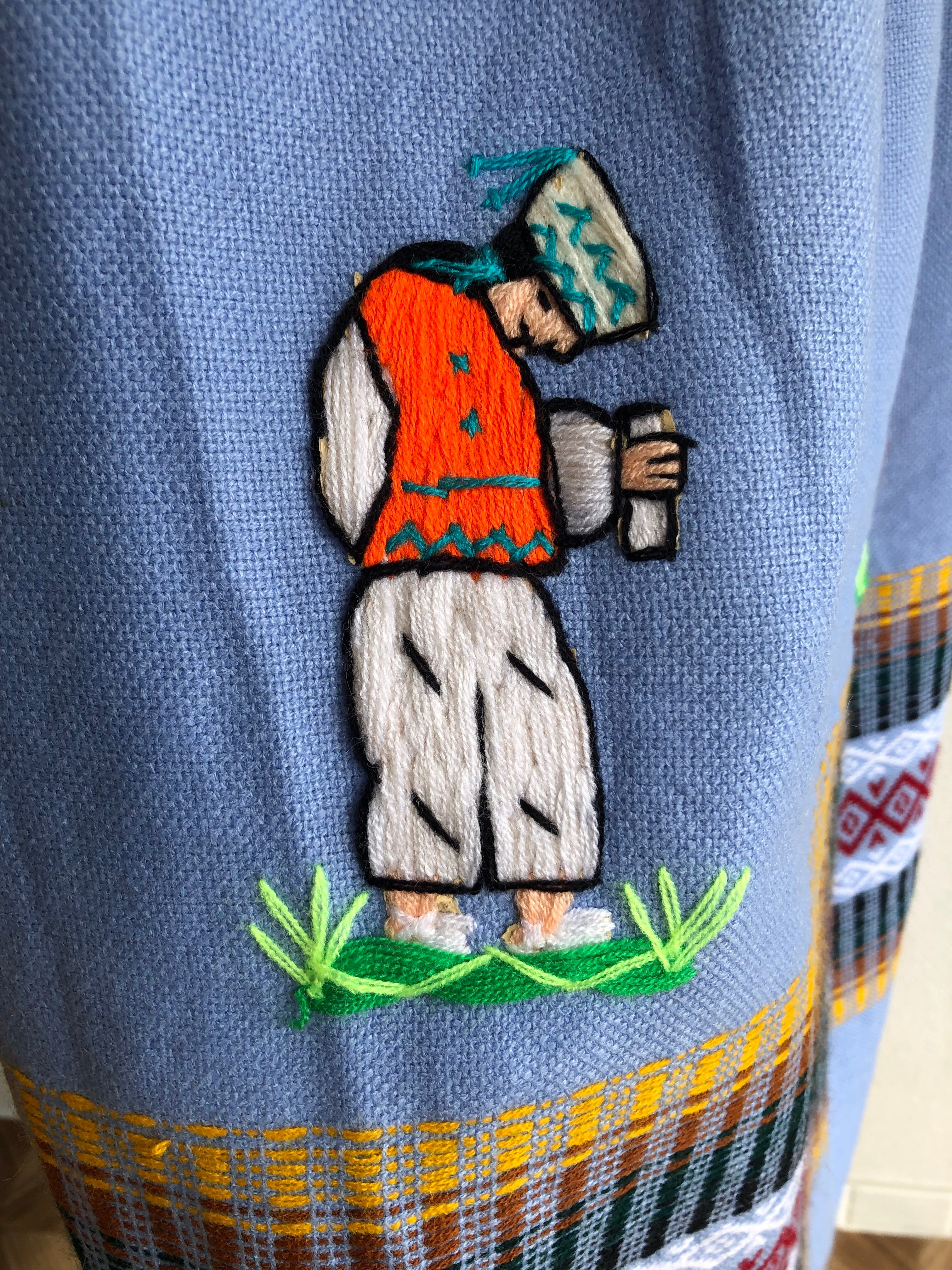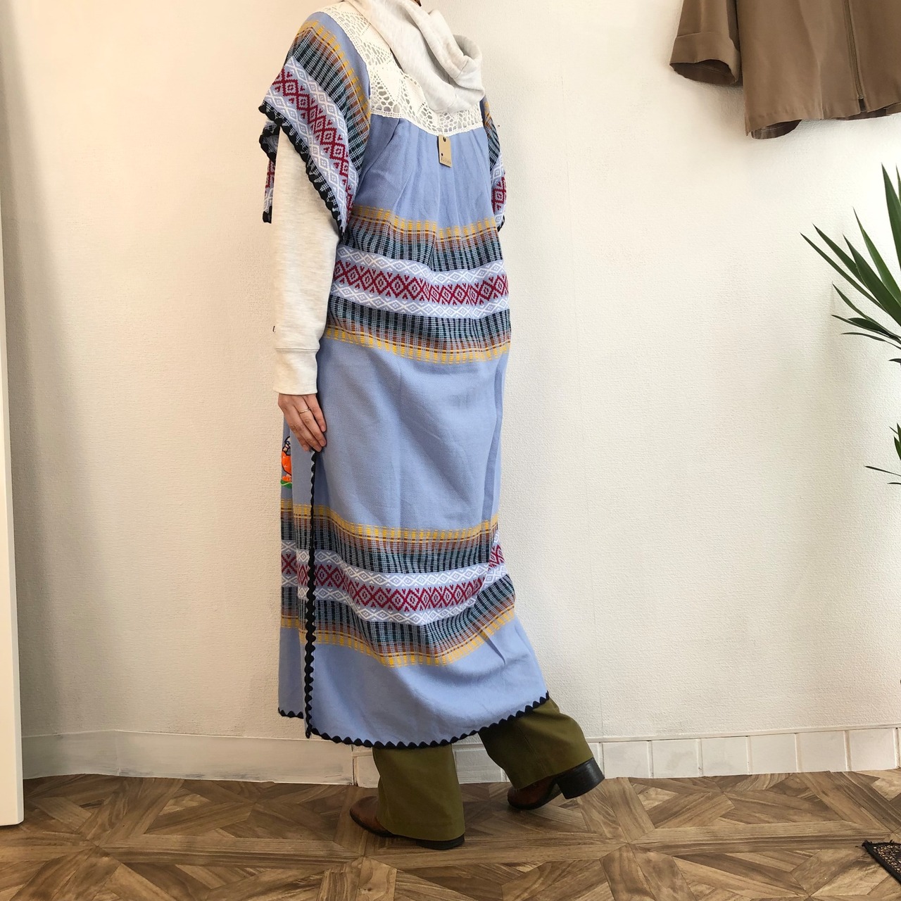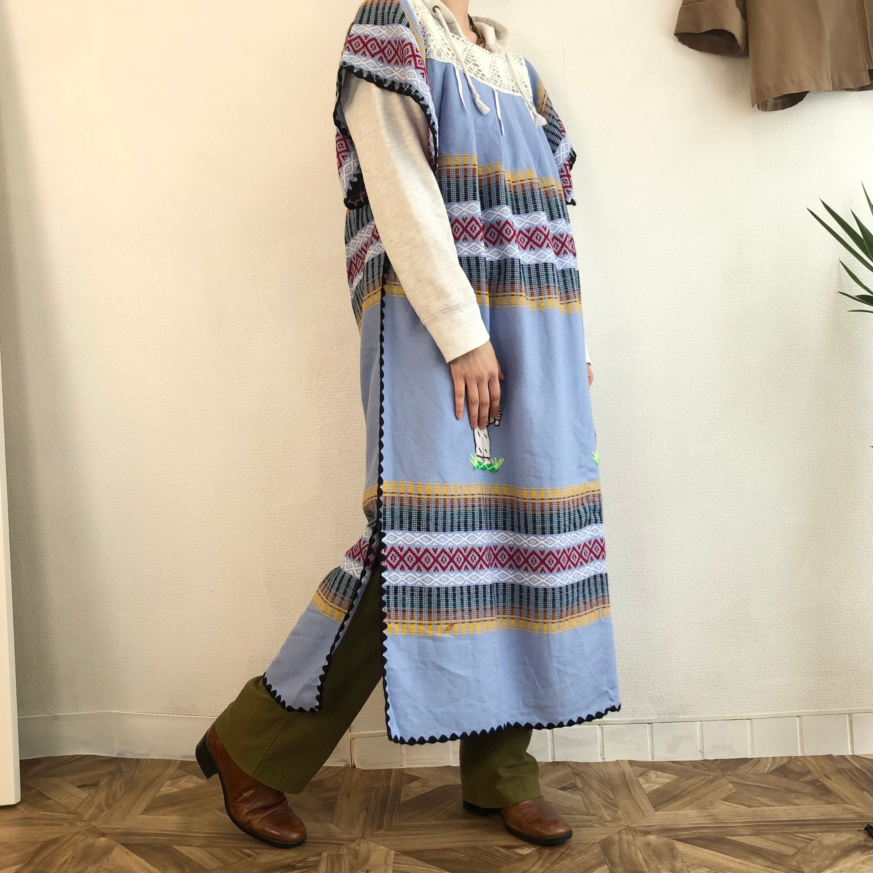•恐らく70−80年代頃、薄いニット素材の刺繍ドレスです◎