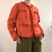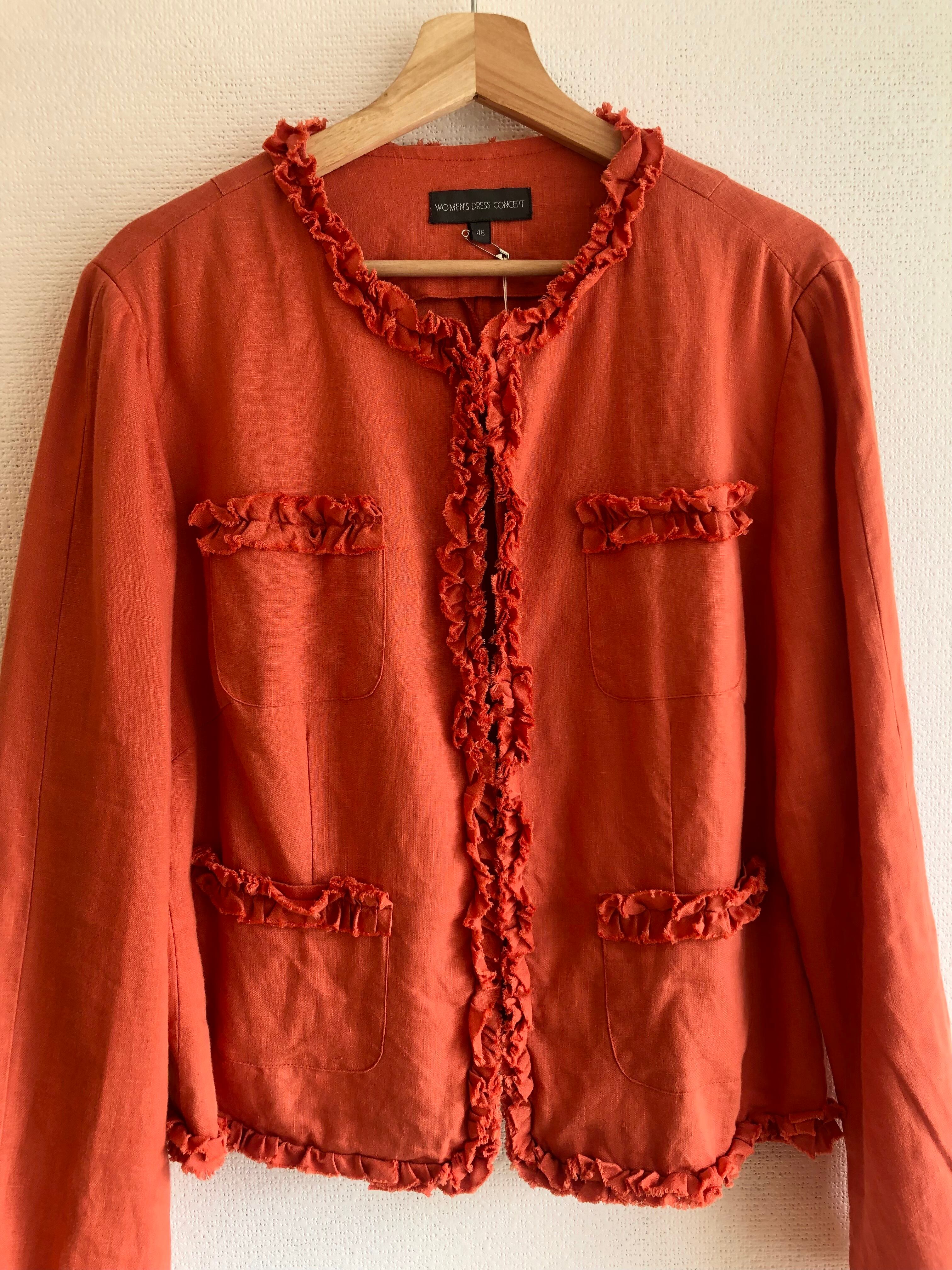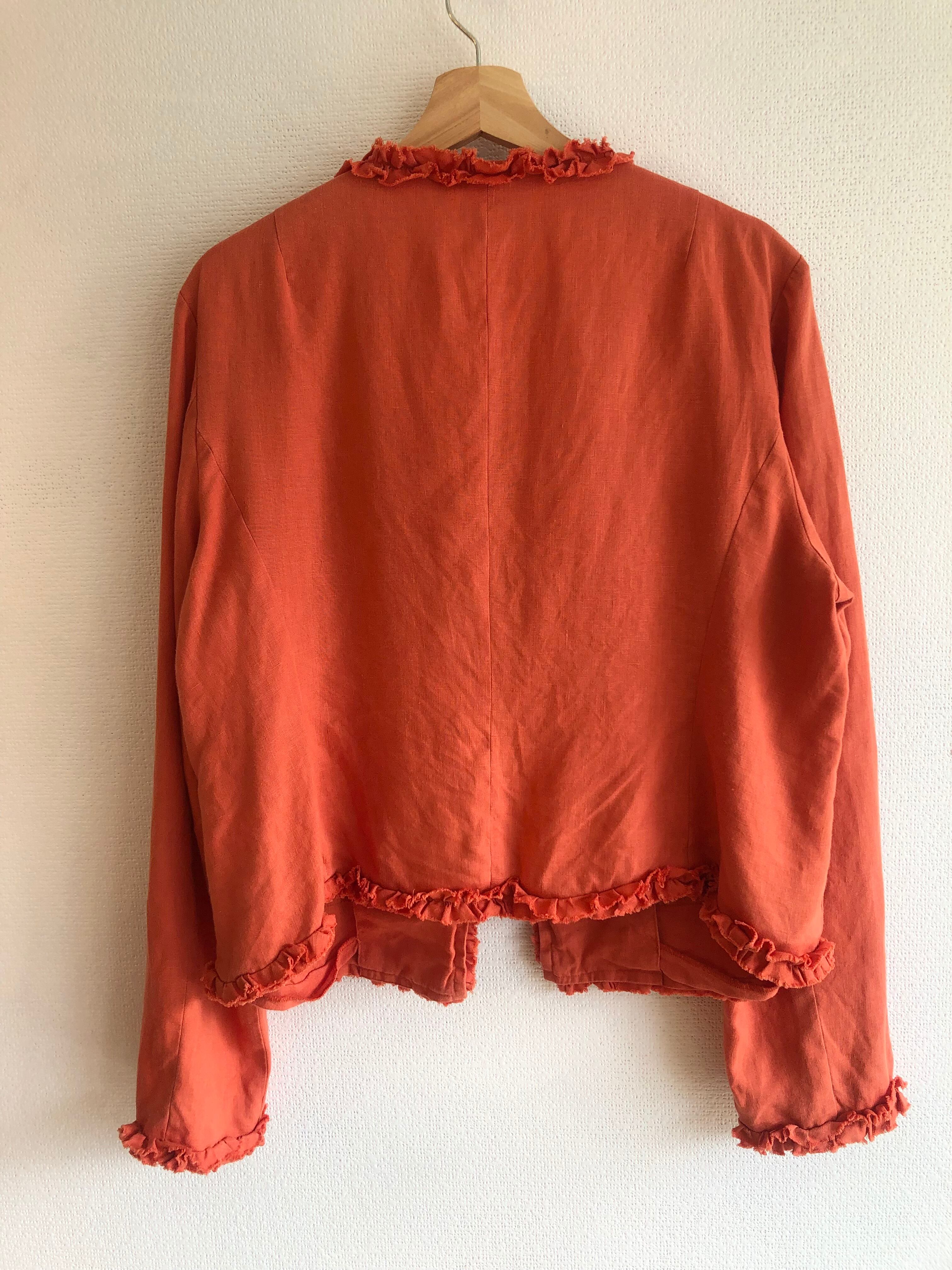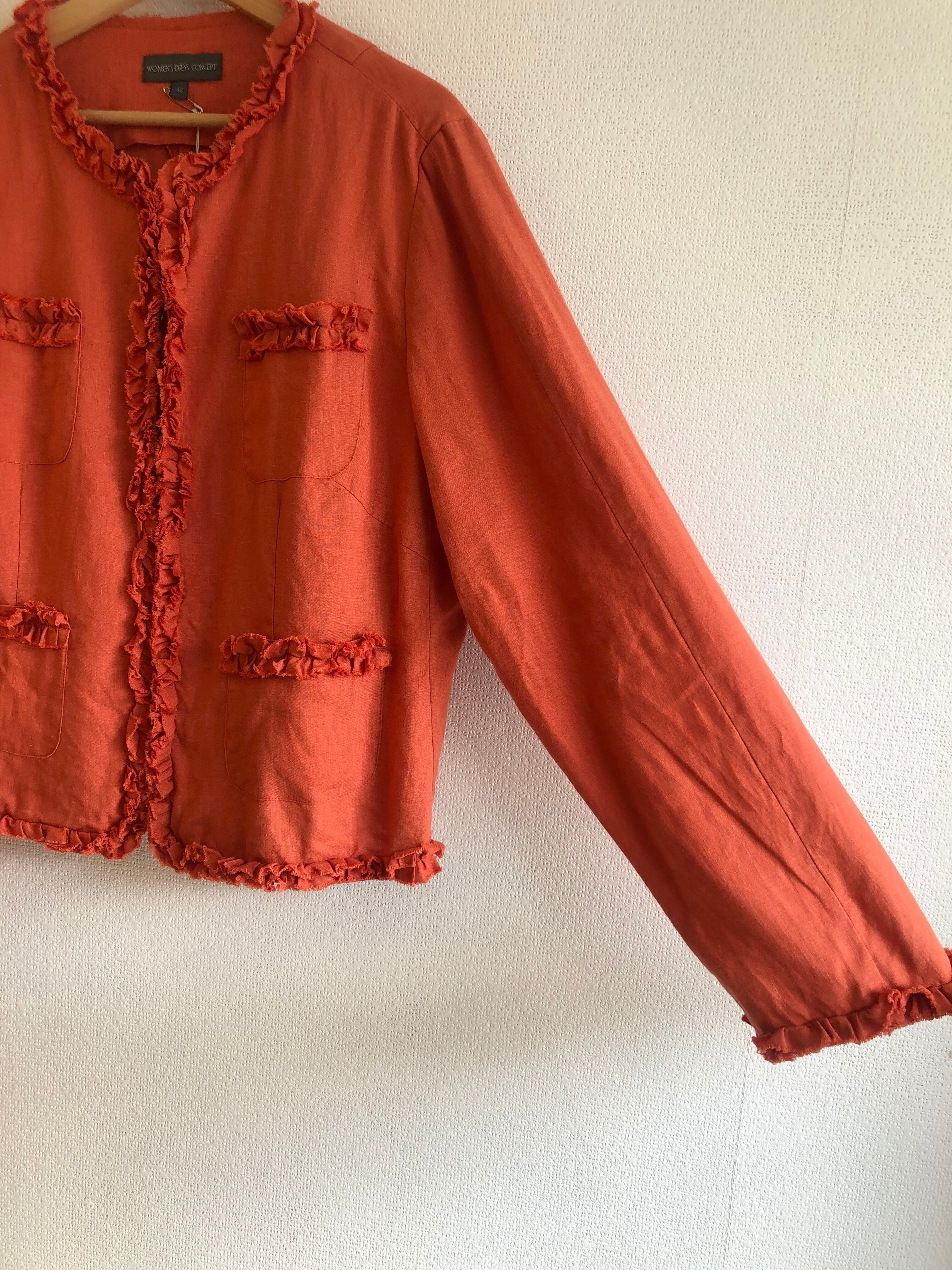 •リネン素材で薄手の、フリルデザインジャケットです◎