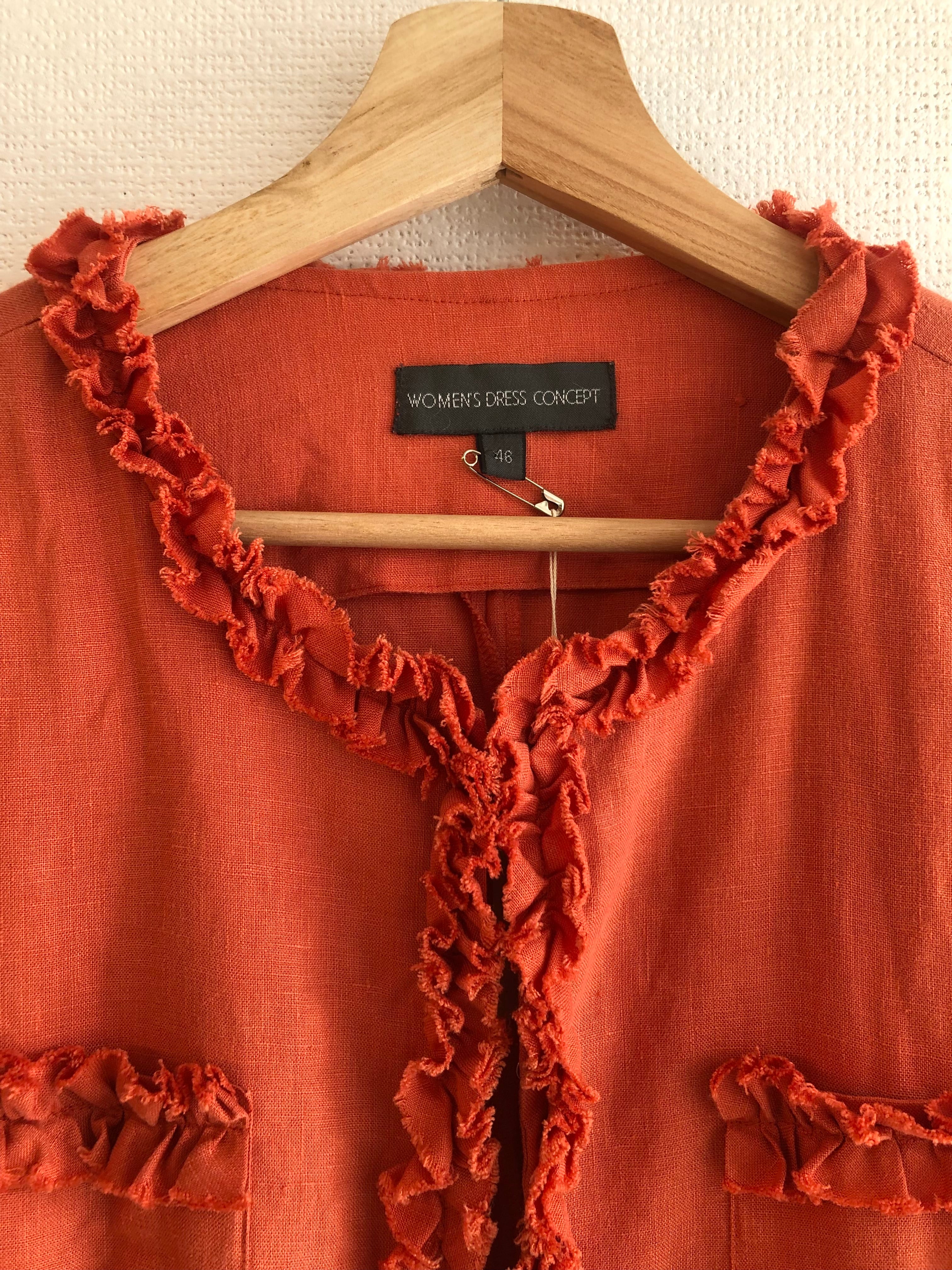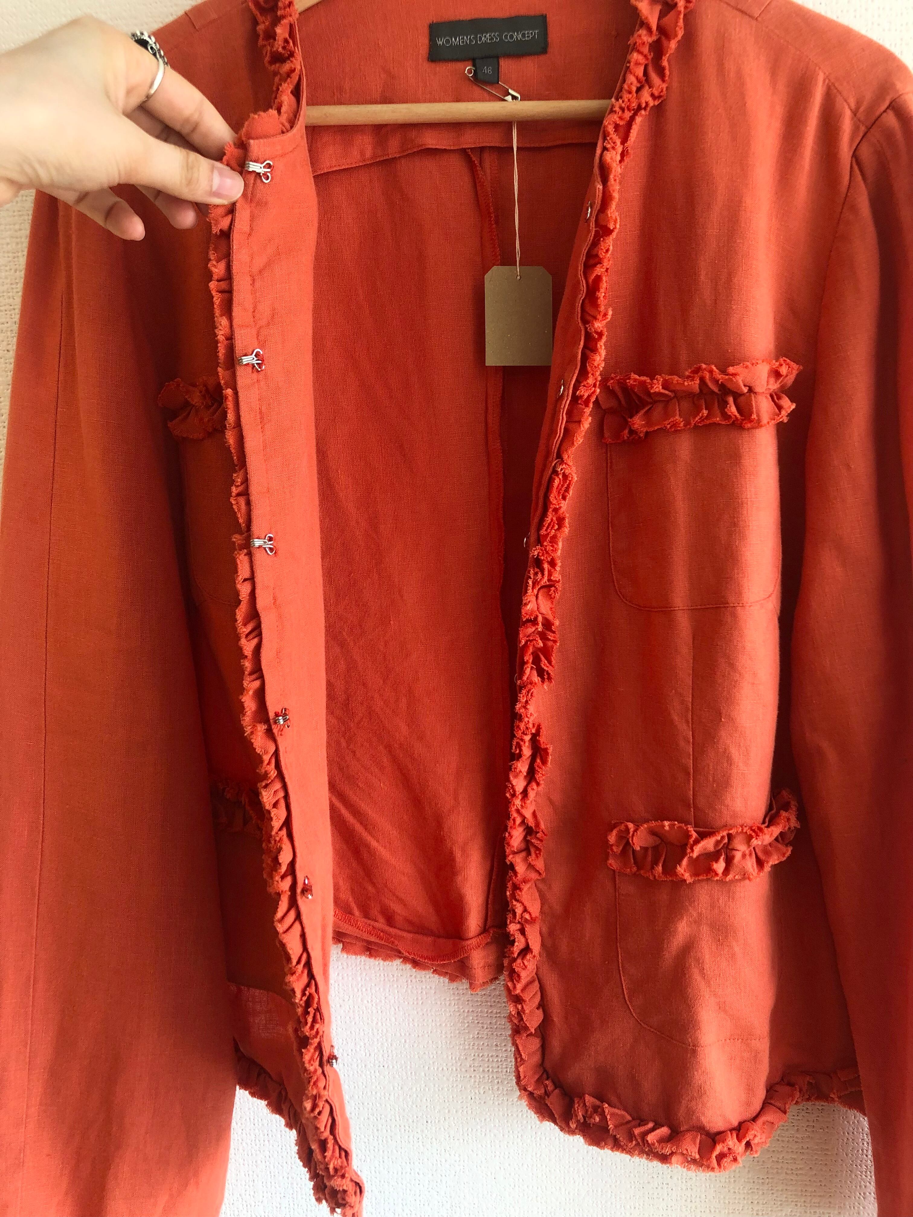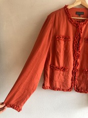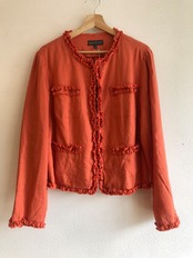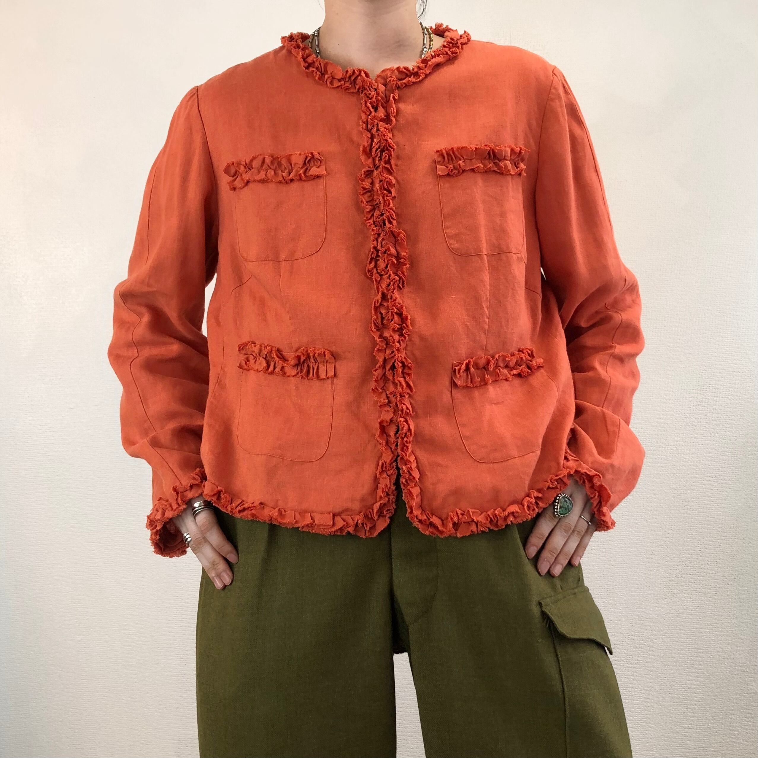 •リネン素材で薄手の、フリルデザインジャケットです◎