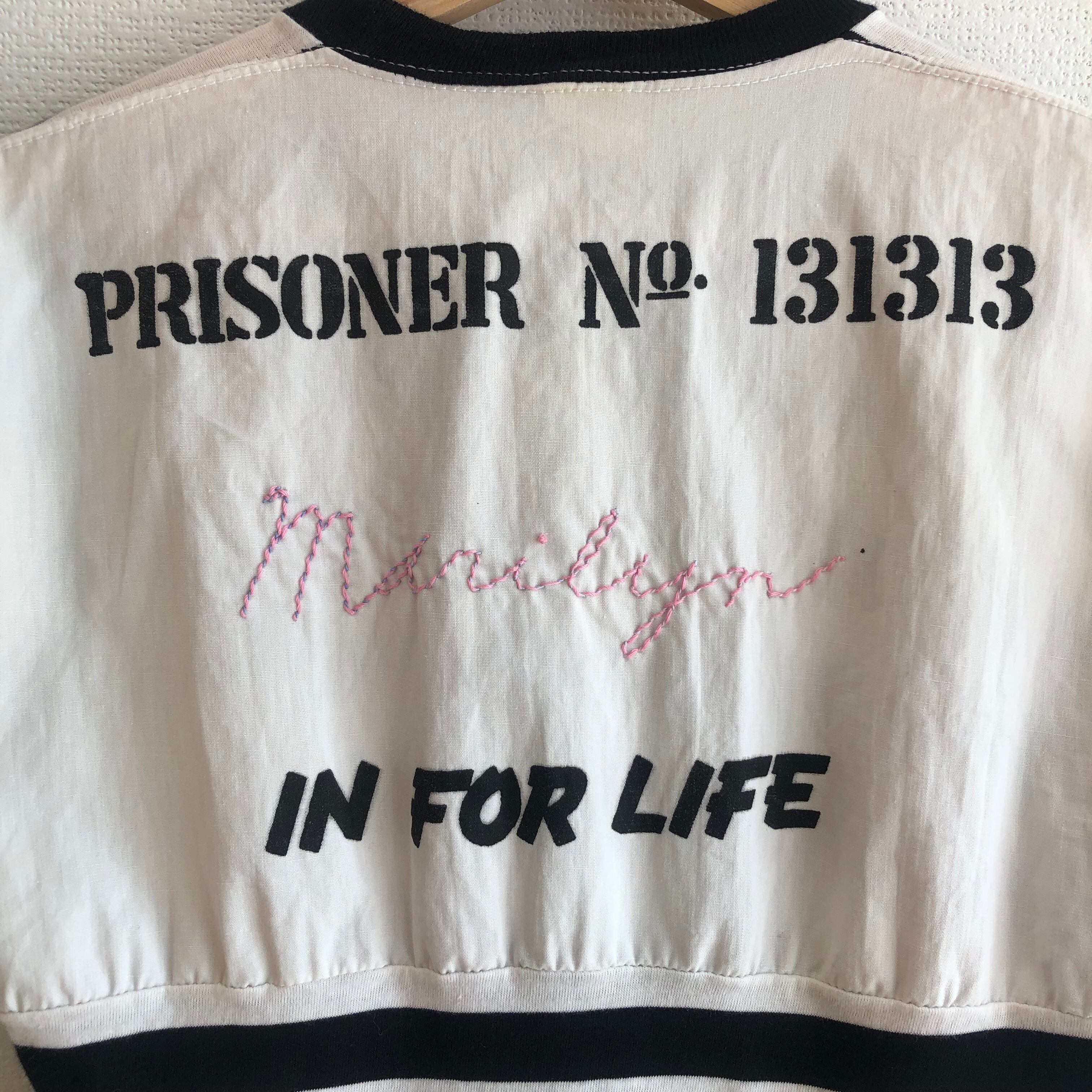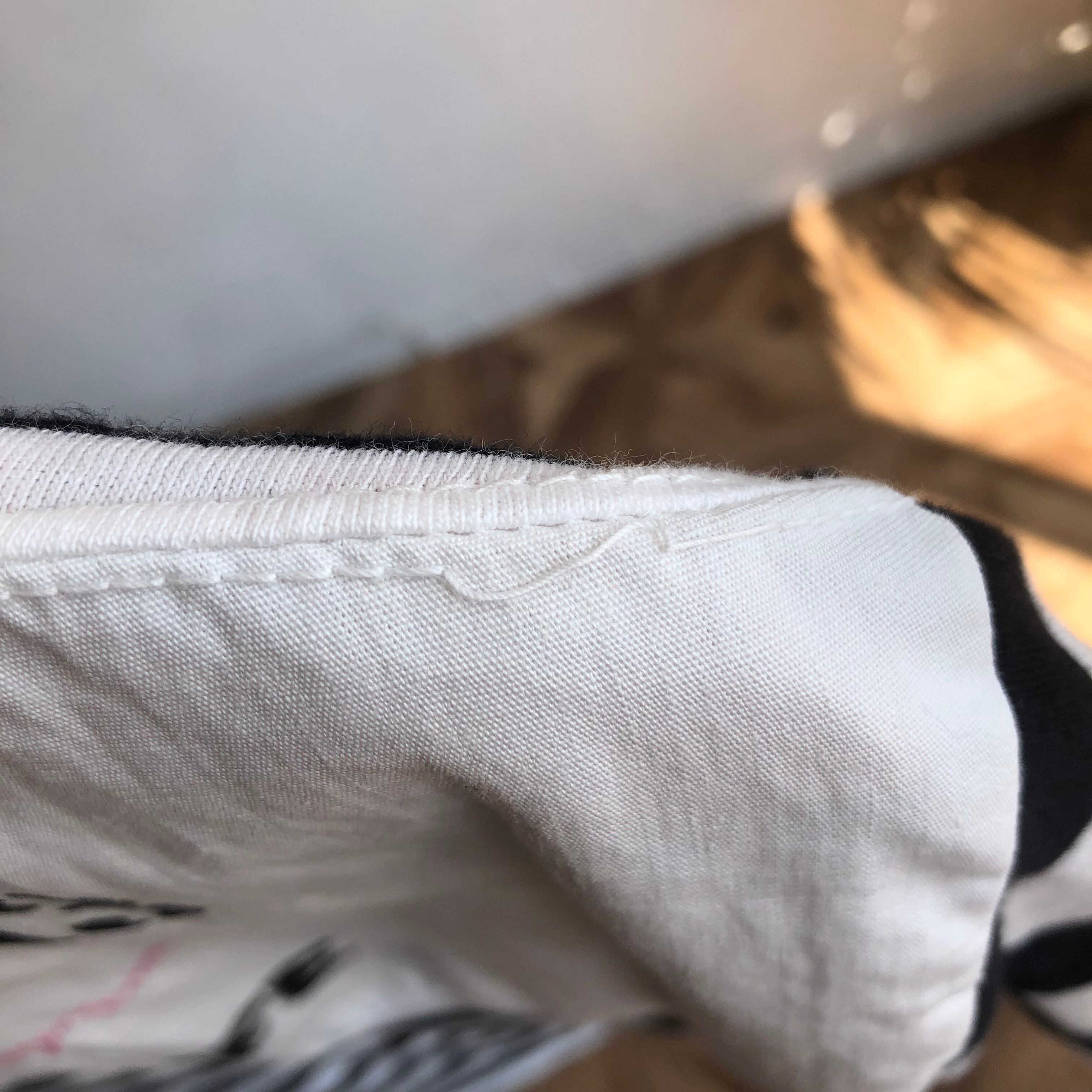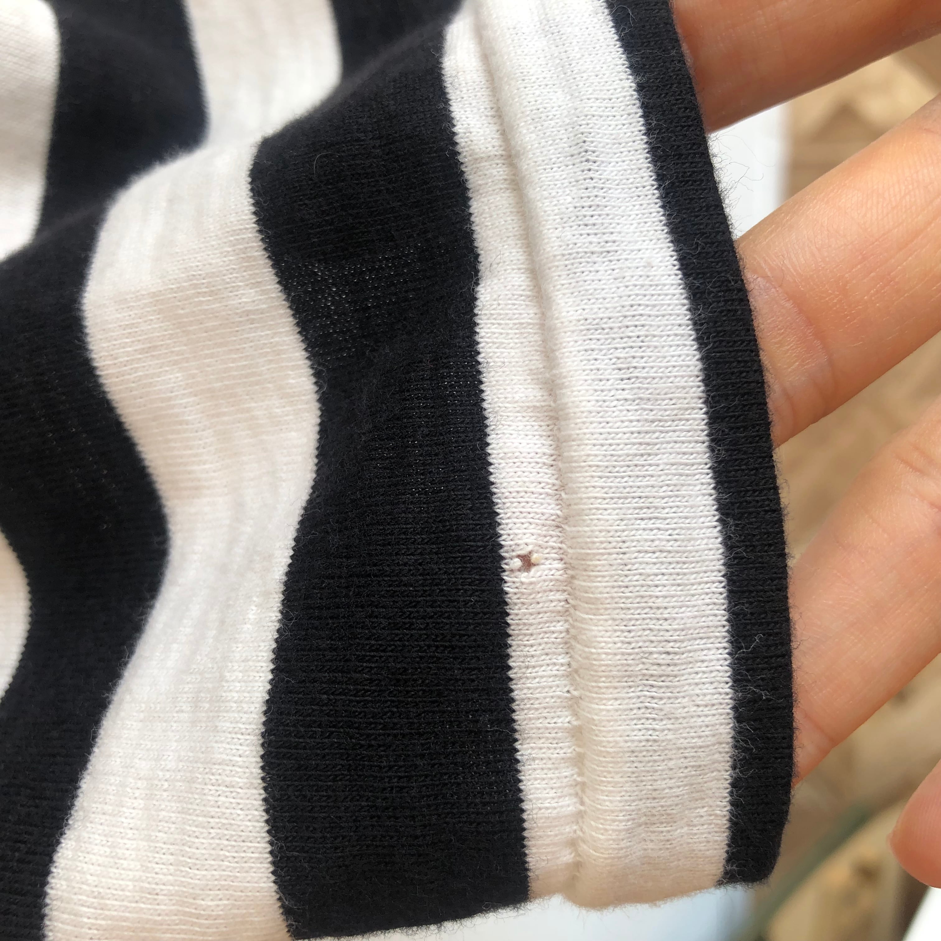 •コンディション:肩のステッチほつれ、袖小さな汚れ、裾付近に数箇所穴あり。画像がございます。目立ったダメージ汚れはございません。