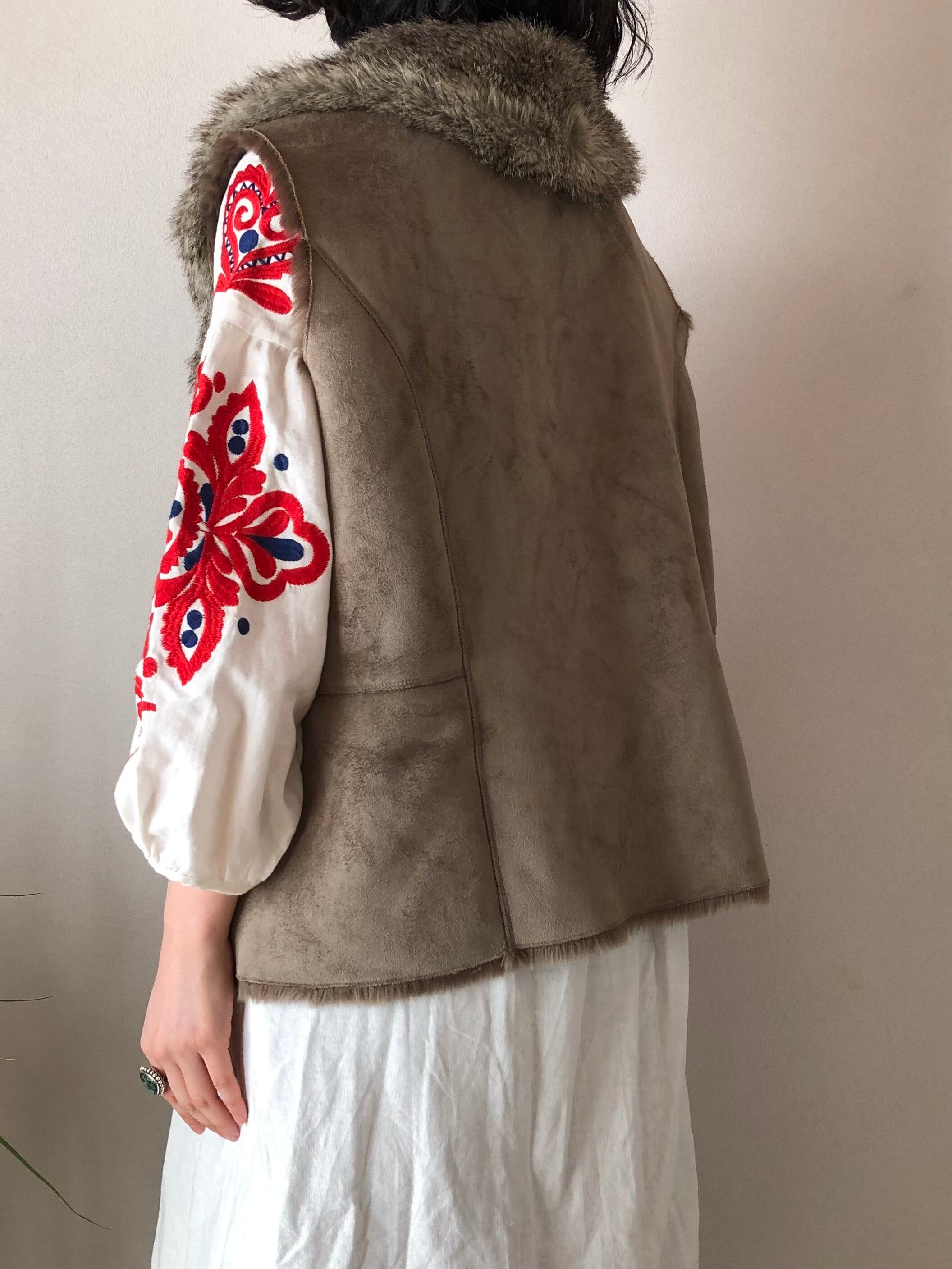 •フェイクスウェード×フェイクファーのベストです◎